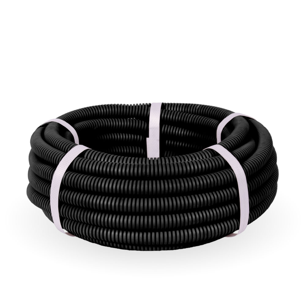 Труба гофрированная ПНД лёгкая 350 Н безгалогенная (HF) стойкая к ультрафиолету чёрная с/з d20 мм (10м/уп) Промрукав