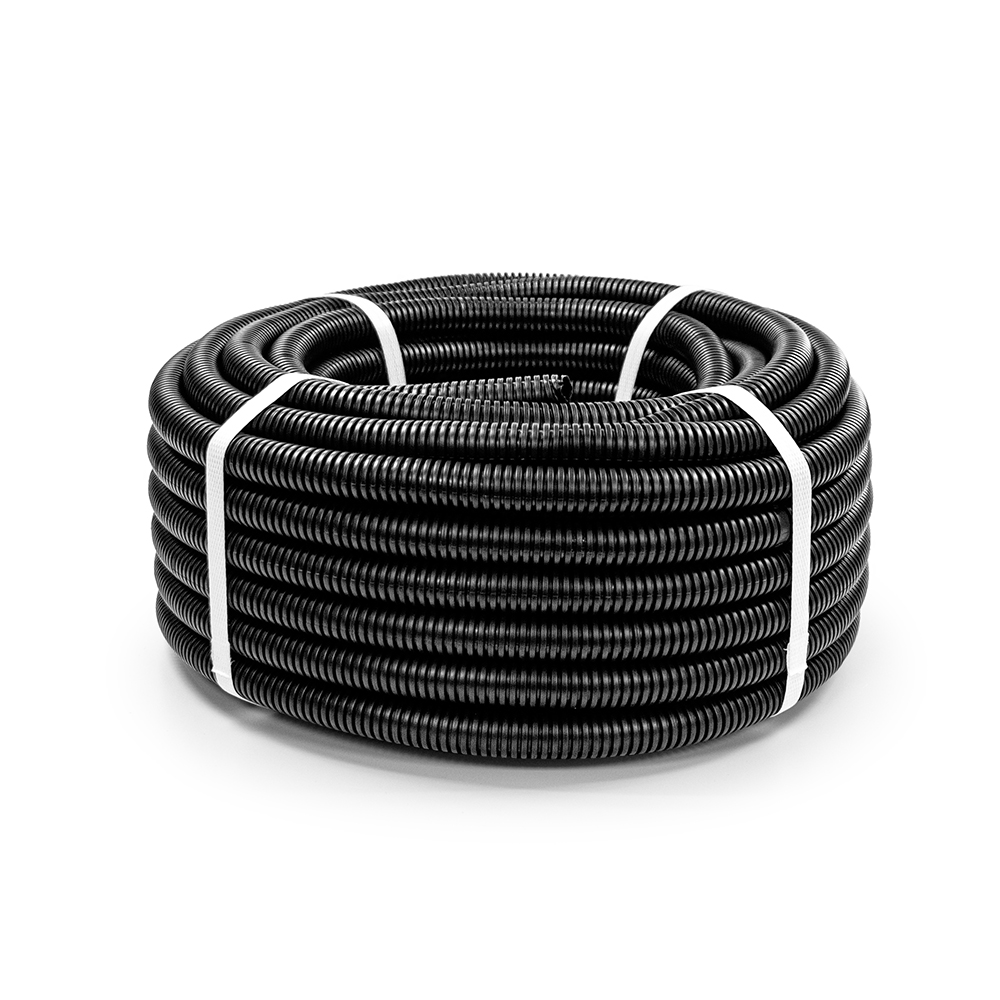 Труба гофрированная ПНД лёгкая 350 Н безгалогенная (HF) стойкая к ультрафиолету чёрная с/з d20 мм (25м/уп) Промрукав