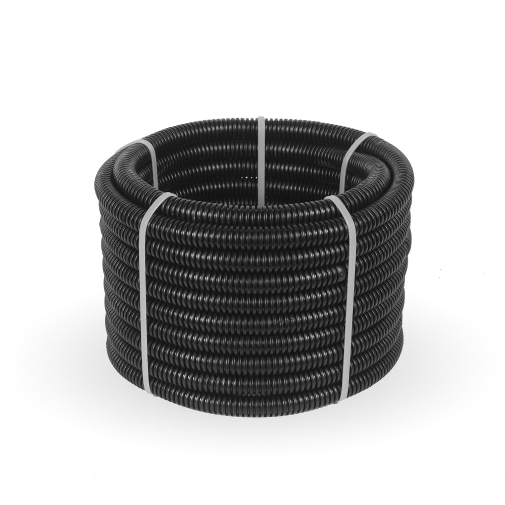 Труба гофрированная ПНД лёгкая 350 Н безгалогенная (HF) стойкая к ультрафиолету чёрная с/з d25 мм (10м/уп) Промрукав