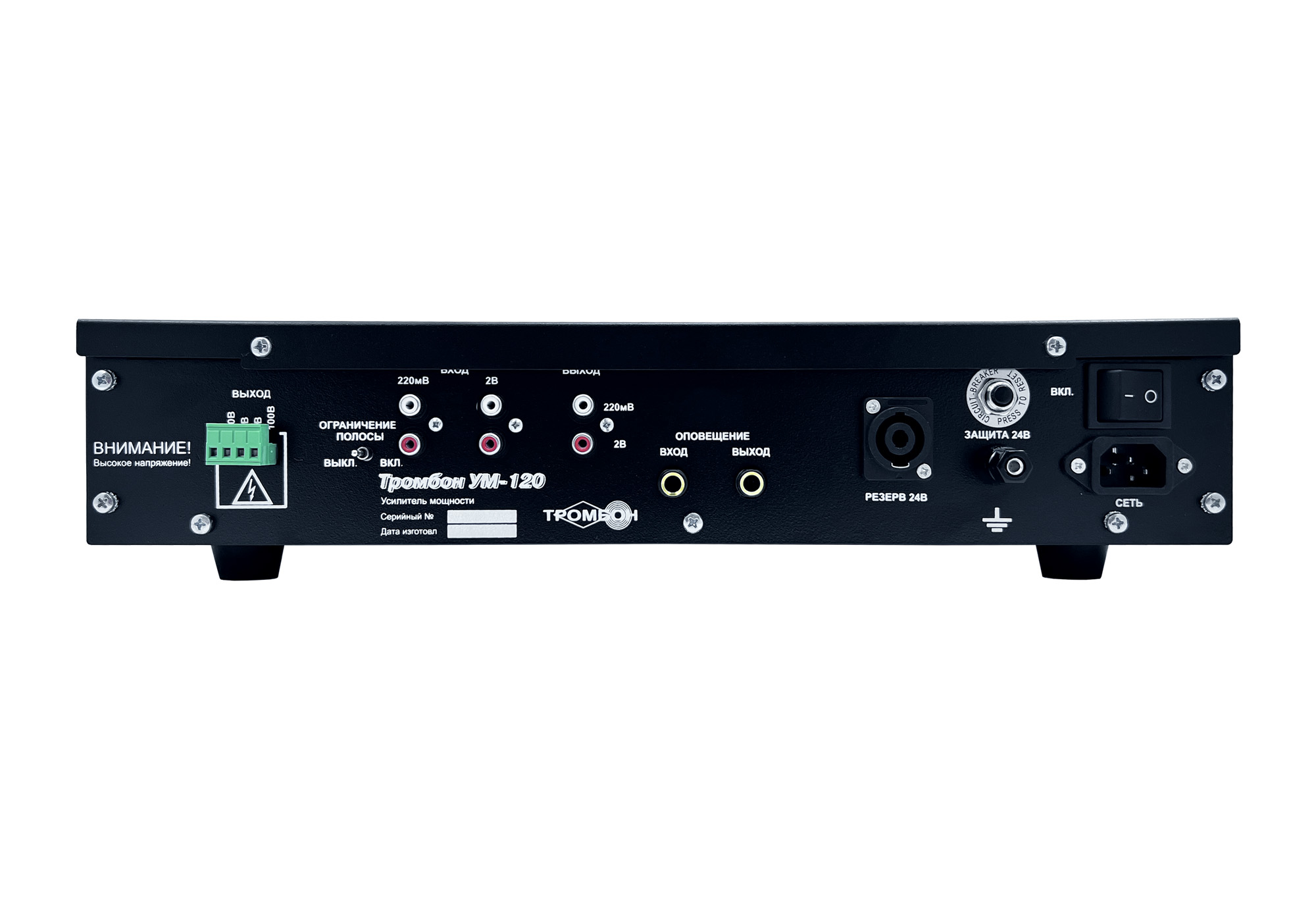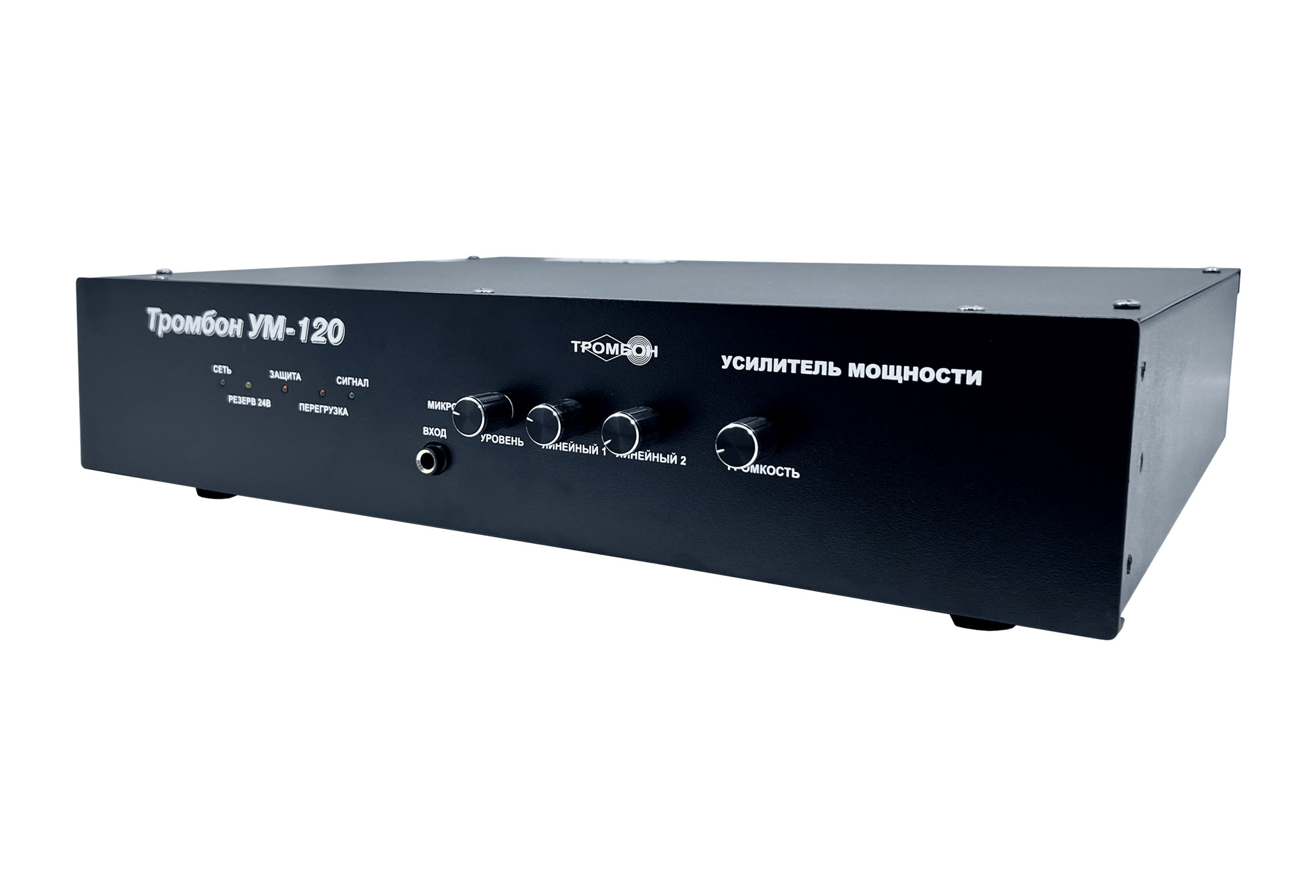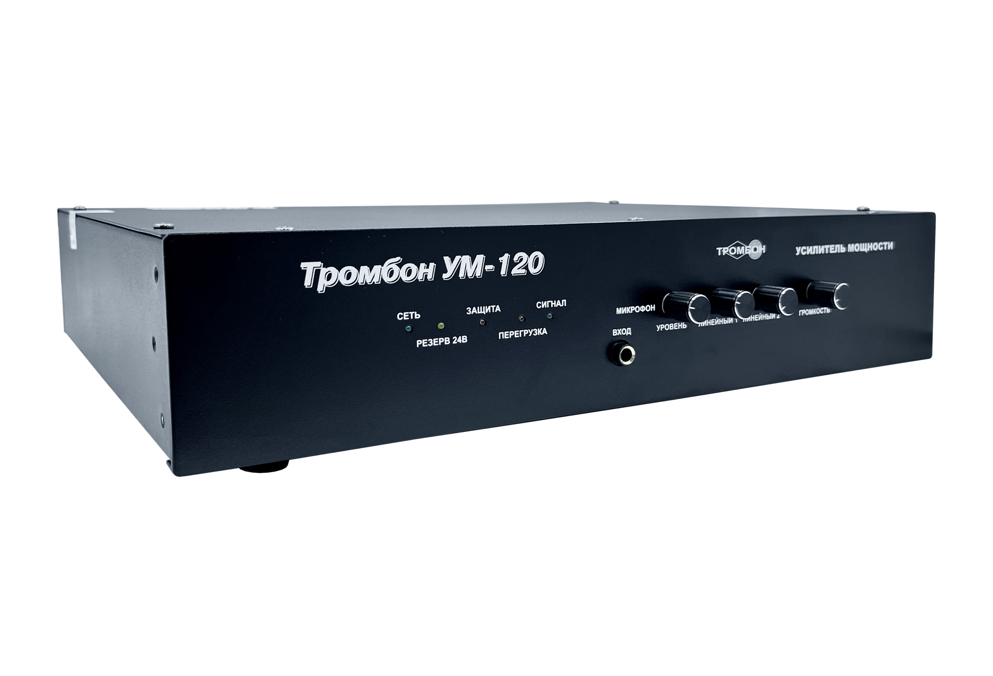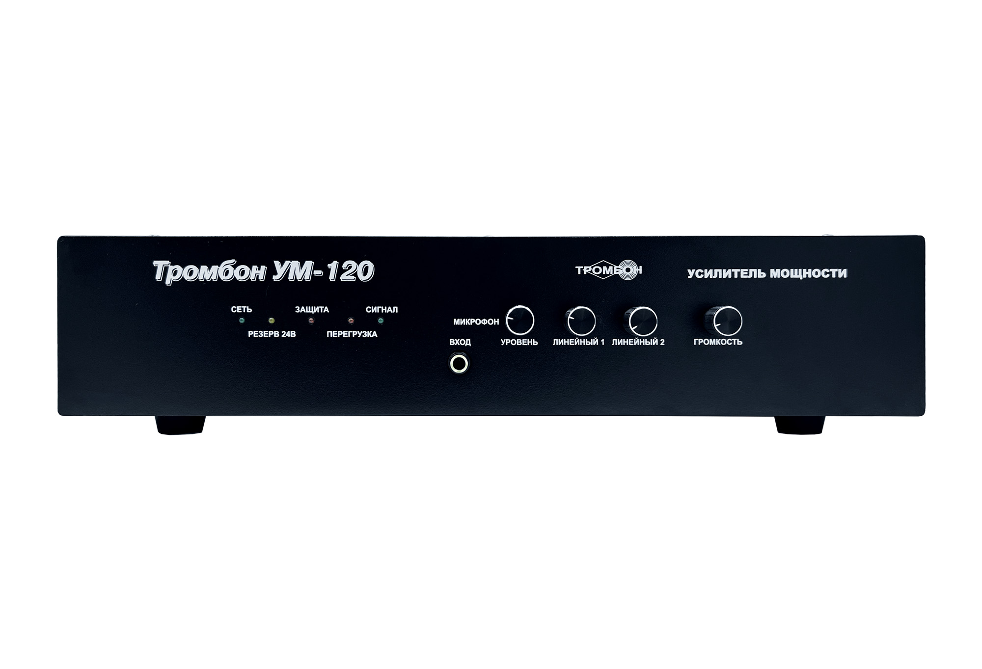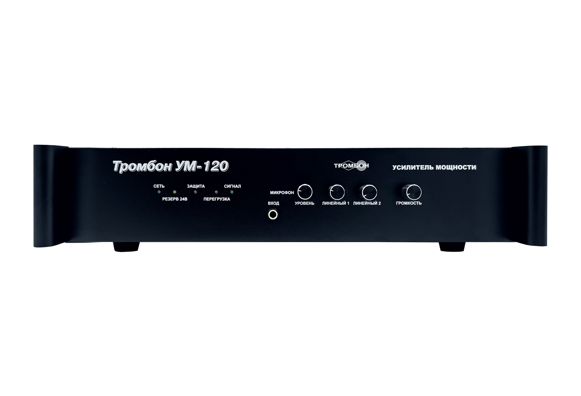Высокоэффективный импульсный усилитель мощности "Тромбон УМ-120" предназначен для использования в составе систем оповещения людей о пожаре в зданиях и сооружениях.Преимущества: - Четыре входа: «Линейный вход 1», «Линейный вход 2», «Оповещение», «Микрофон» - «Выход оповещения» для каскадного соединения усилителей в системе оповещения - Регулировка уровня по всем входам (кроме входа «Оповещение») - Высокая энергетическая эффективность - Улучшенное звучание - Малые габариты - Облегченная конструкция