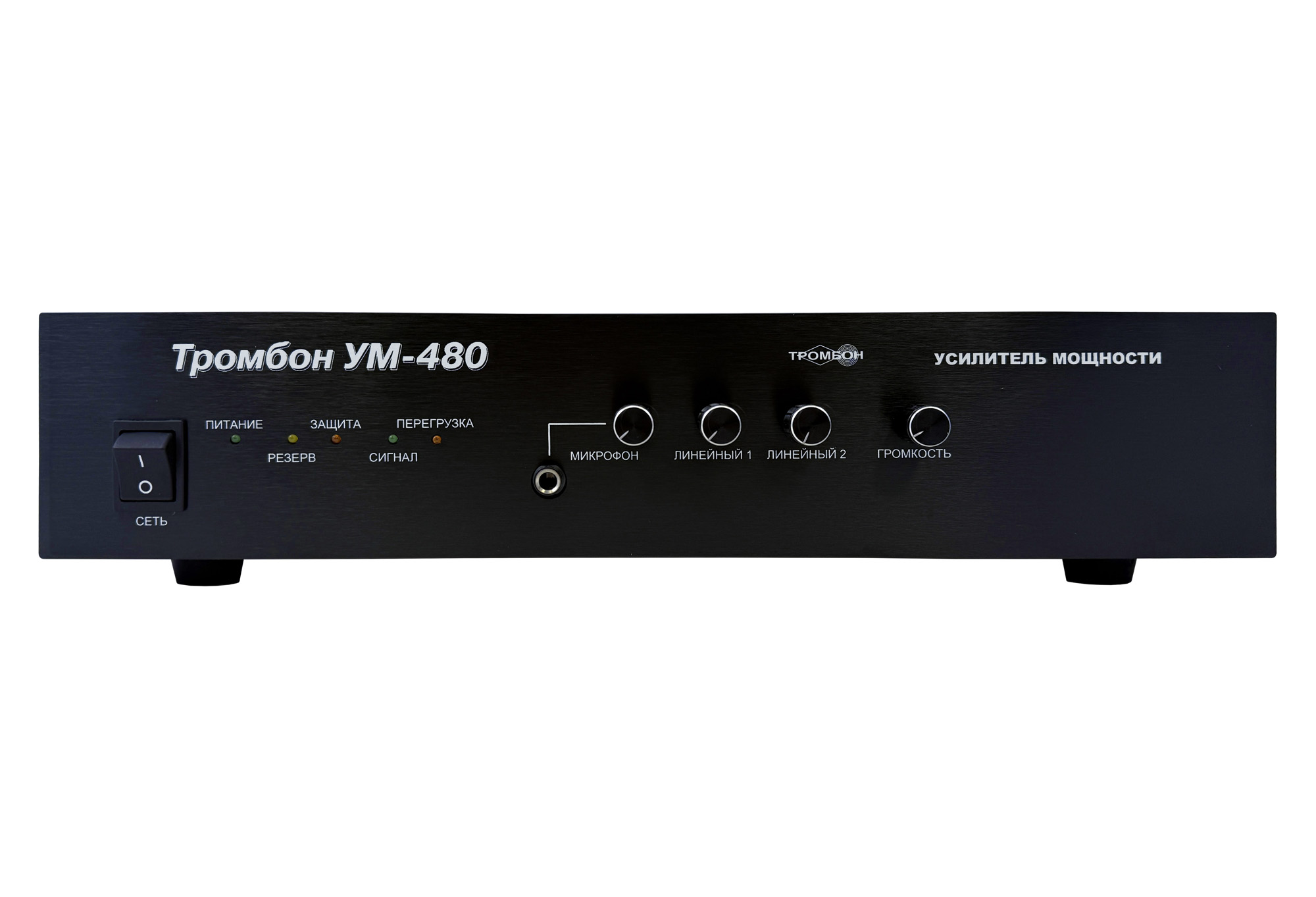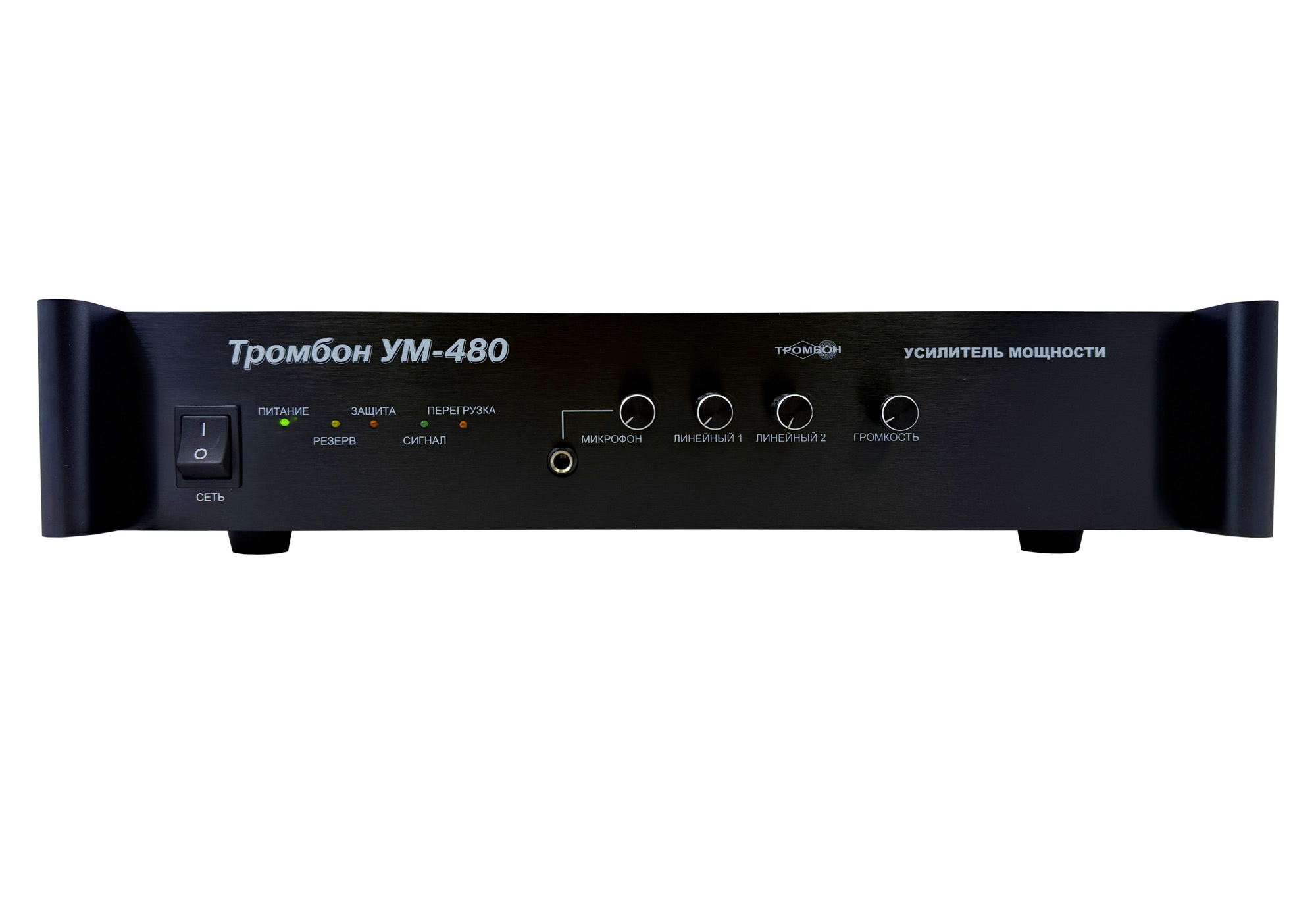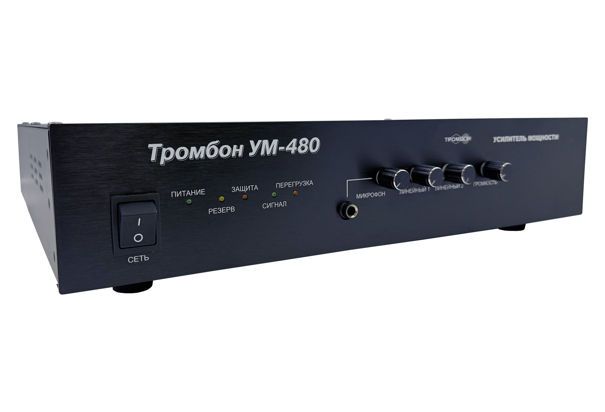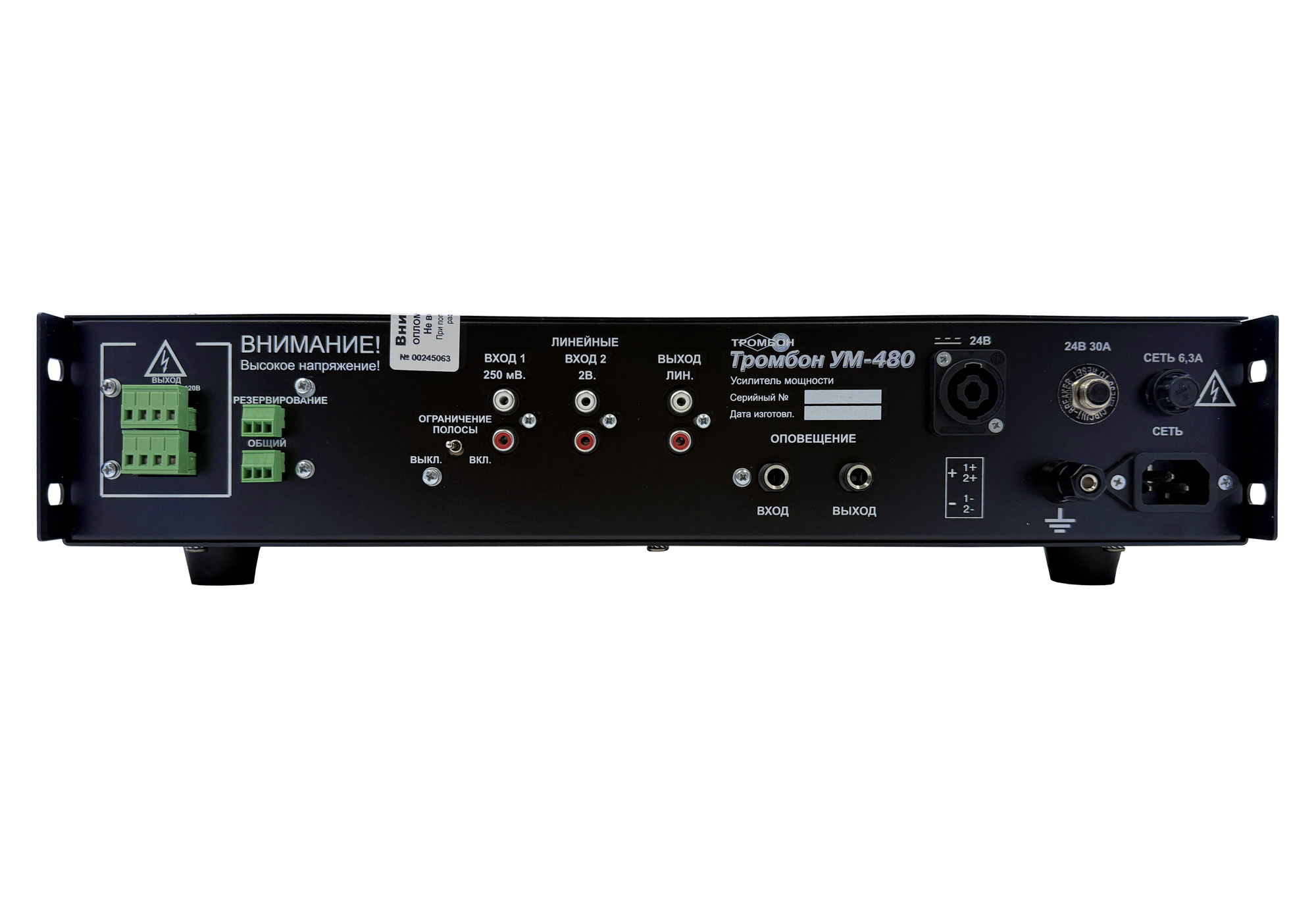 Высокоэффективный импульсный усилитель мощности "Тромбон УМ-480" предназначен для использования в составе систем оповещения людей о пожаре в зданиях и сооружениях.Преимущества: - Четыре входа: «Линейный вход 1», «Линейный вход 2», «Оповещение», «Микрофон» - «Выход оповещения» для каскадного соединения усилителей в системе оповещения - Регулировка уровня по всем входам (кроме входа «Оповещение») - Высокая энергетическая эффективность - Улучшенное звучание - Малые габариты - Облегченная конструкция - Возможность резервирования усилителей мощности