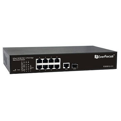 IP-коммутатор. 8 портов 10/100M PSE + 2 порта Gigabit Uplink (TP x 1, SFP x 1). Поддержка MDI/MDX-X. Стандарт PoE IEEE 802.3at PoE. До 30W на порт; Управление через WEB интерфейс. Протоколы VLAN, QoS, RSTP, IGMP, LACP, Port Security, BContr., BSC. Максимальная суммарная нагрузка 130W. Металлический корпус.