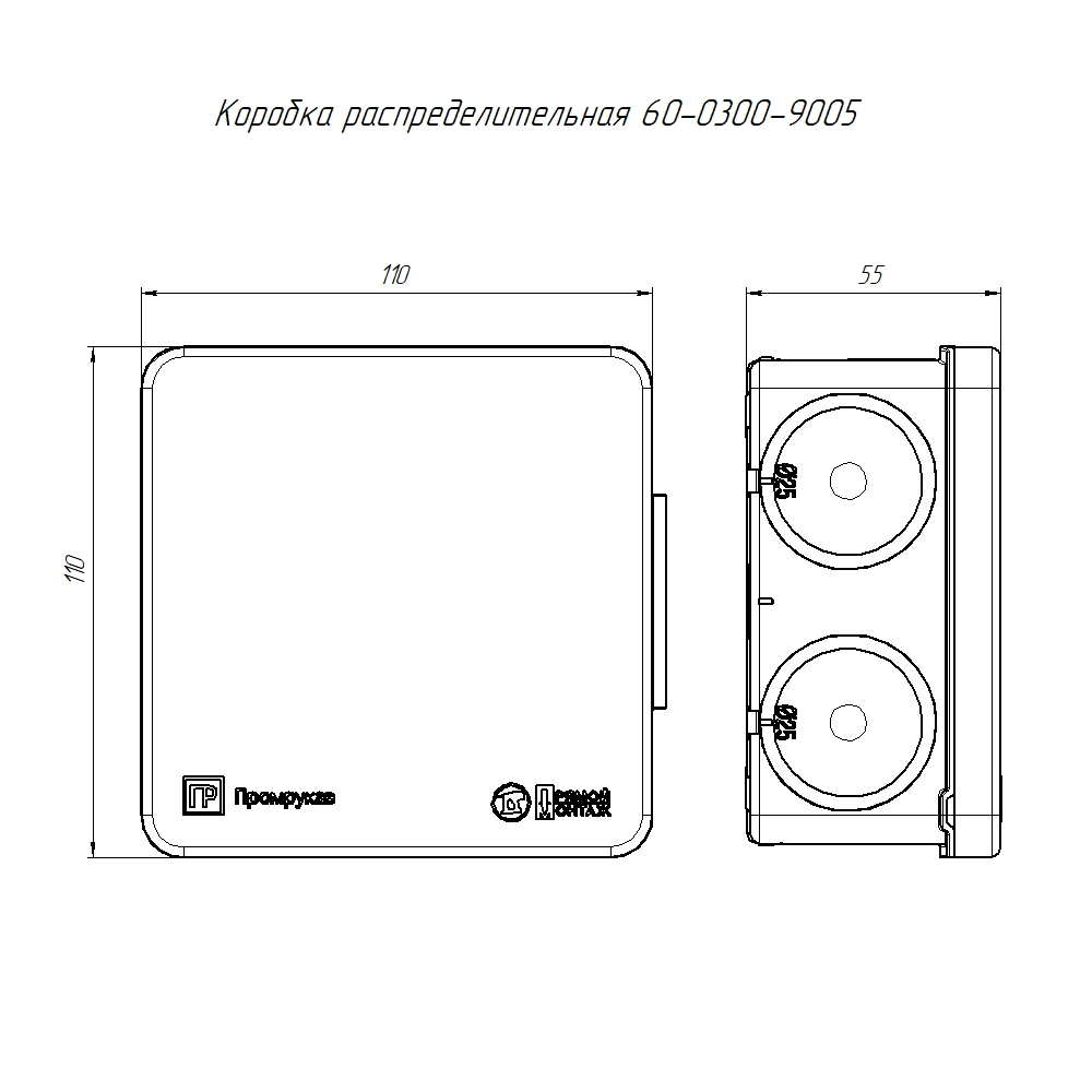 Коробка распределительная 60-0300-9005 для прямого монтажа двухкомпонентная безгалогенная (HF) чёрная 100х100х50 Промрукав