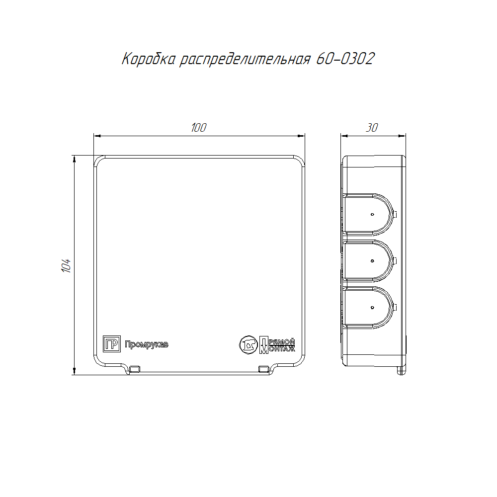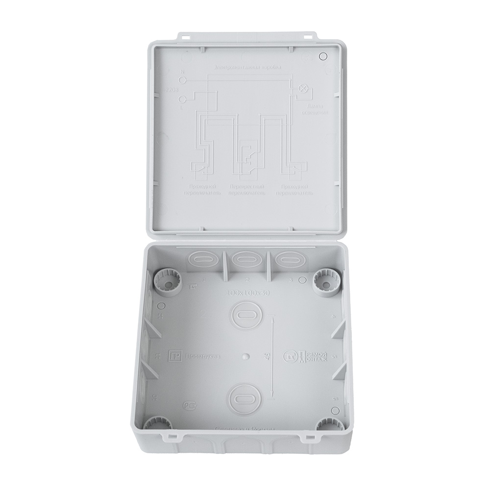 Коробка распределительная 60-0302 для прямого монтажа двухкомпонентная безгалогенная (HF) 100х100х30 Промрукав