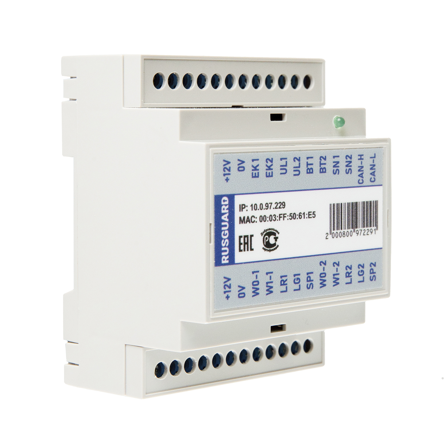 Сетевой контроллер, 64 000 ключей, 60 000 событий, интерфейсы считывателей Touch Memory, Wiegand, интерфейс связи с сервером Ethernet, CAN-HS, 2 выходных ключа, 0…+50 °С, пластиковый корпус на DIN рейку, БЕЗ блока питания