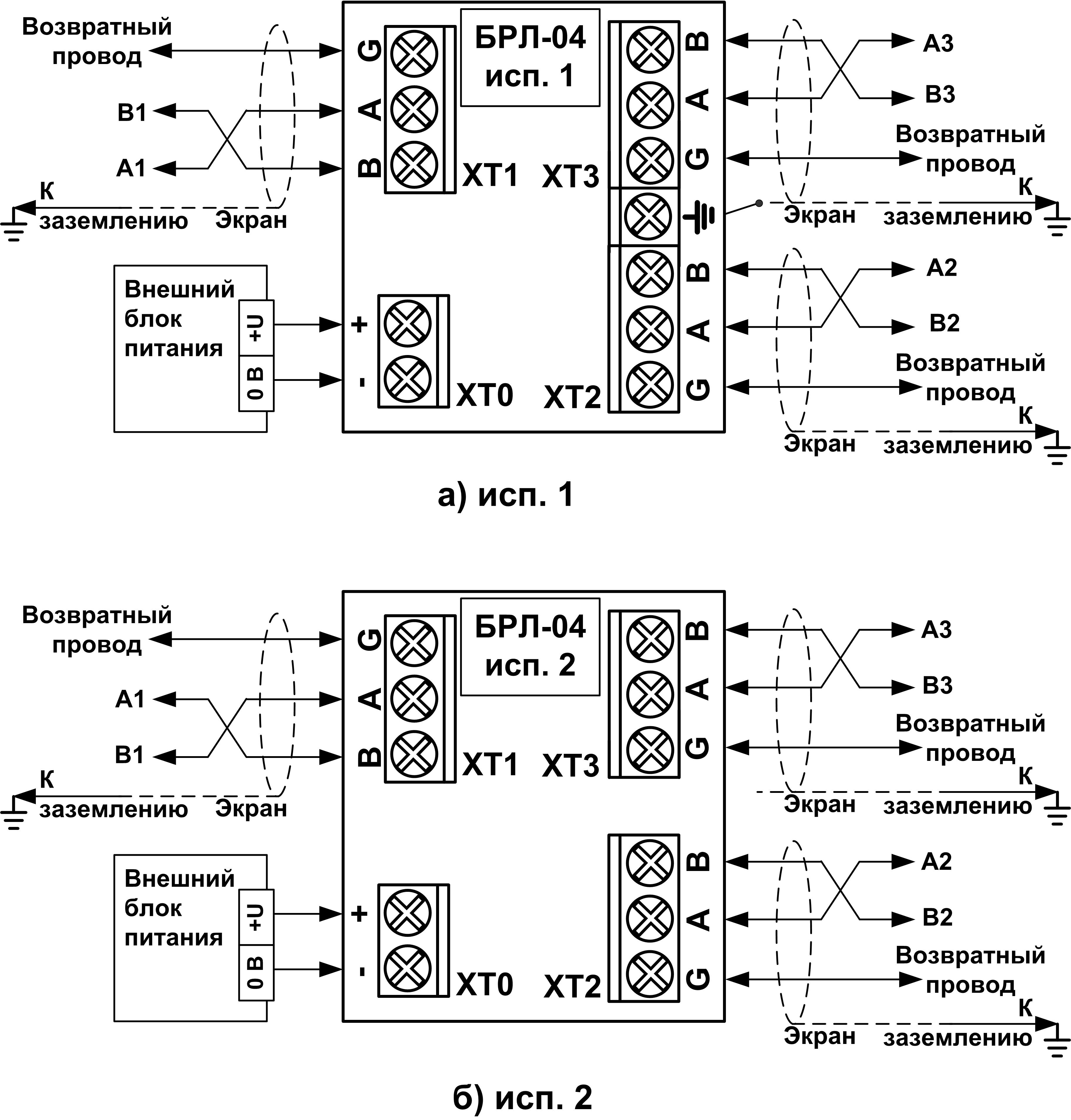 Блок ретранслятора линейный 3-портовый (репитер RS-485 с гальванической изоляцией), корпус для монтажа на стену.