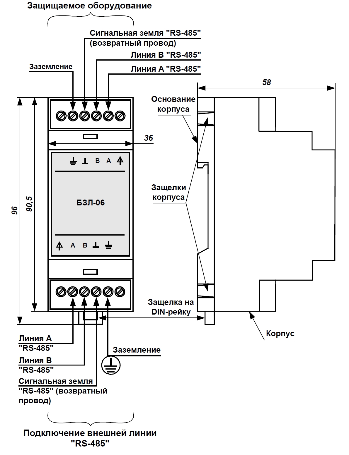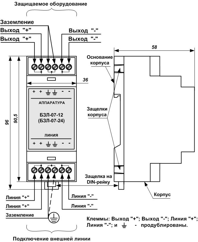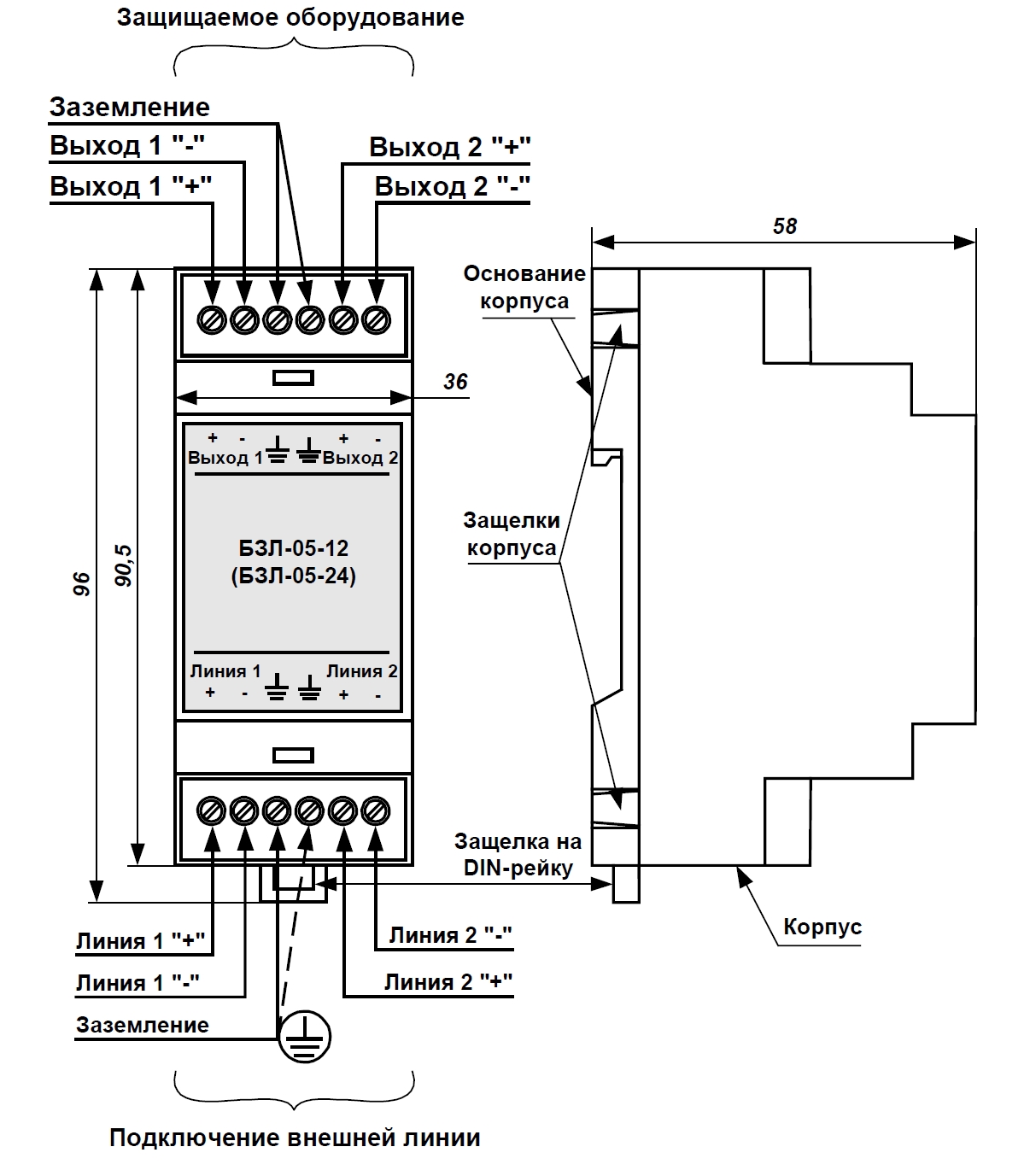 Блок защиты линий, грозозащита оборудования, подключенного к шлейфам сигнализации (извещатели охранные и пожарные, сетевые контроллеры шлейфов сигнализации СКШС), линиям связи и линиям вторичного питания систем сигнализации. БЗЛ-05 содержит – два канала защиты: шлейфы сигнализации или линии электропитания 24 В
