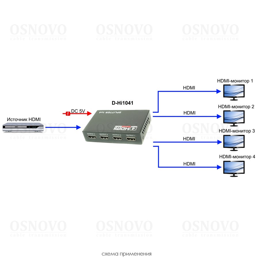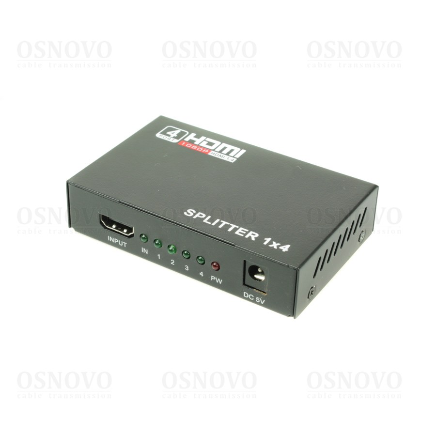 Разветвитель сигнала HDMI (1вх./4вых.).Максимальное разрешение 4K2K(30Гц). Поддержка 3D и HDCP. Скорость передачи данных до 10,2Гбит/с. Вх. - HDMI(A)/Роз.2,1х5мм(DC5V). Вых. - HDMI(A)x4. В комплекте БП DC5V(1А). Вес: 0,13кг. Размеры (ШxВxГ): 96x22x62мм. Рабочая температура -5…+55°С.