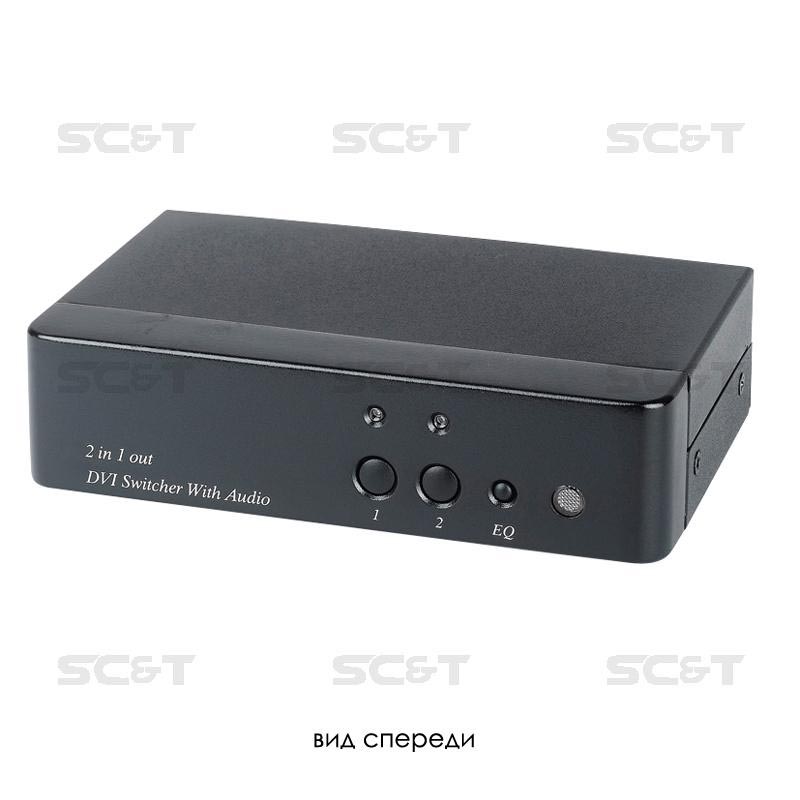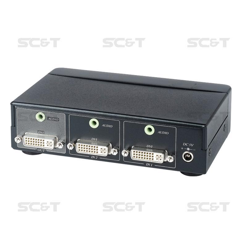 Коммутатор DVI- и стерео аудиосигналов, 2 входа (2х DVI-I, 2х TRS 3.5 мм) , 1 выход (1х DVI-I, 1х TRS 3.5 мм). Разрешение DVI-сигнала: до 1920х1200 пикселей, HDMI-сигнала: до 1080p, 60 Гц. Совместим с HDMI, поддерживает HDCP. Uпит= 5В, I=0.3А (макс.). Размеры (ШxВxГ): 145х37х96мм. Рабочая температура: -40... +45 С.