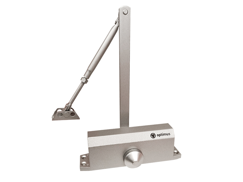 Рекомендуемый вес двери 65-85 кг, рекомендуемая ширина дверного полотна 900-1300 мм, габариты тела доводчика 204x68x71 мм, посадочные размеры 188x19 мм, фиксация открытого положения, max. угол открытия 180°, 2 клапана для регулирования скорости закрытия и скорости дохлапывания, универсальный тип д/левой и правой двери, кол-во циклов безотказной работы 500 000 , -55°С ... +60°С, алюминий, 1,7 кг. Гарантия 1 год. Не совместим со скользящими штангами Optimus SL!