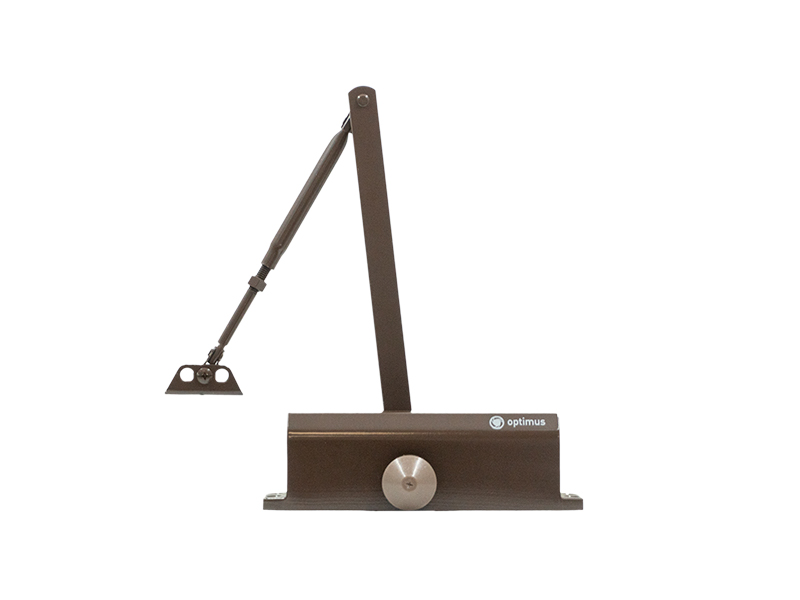 Рекомендованный вес двери 65-85 кг, Ширина дверного полотна 900-1300 мм, габариты тела доводчика 202x44x68 мм, посадочные размеры 188x19 мм, max. угол открытия 180°, 2 клапана для регулирования скорости, универсальный тип д/левой и правой двери, кол-во циклов безотказной работы 500 000 , -55°С ... +60°С, алюминий, 1,7 кг, цвет: коричневый. Не совместим со скользящими штангами Optimus SL!