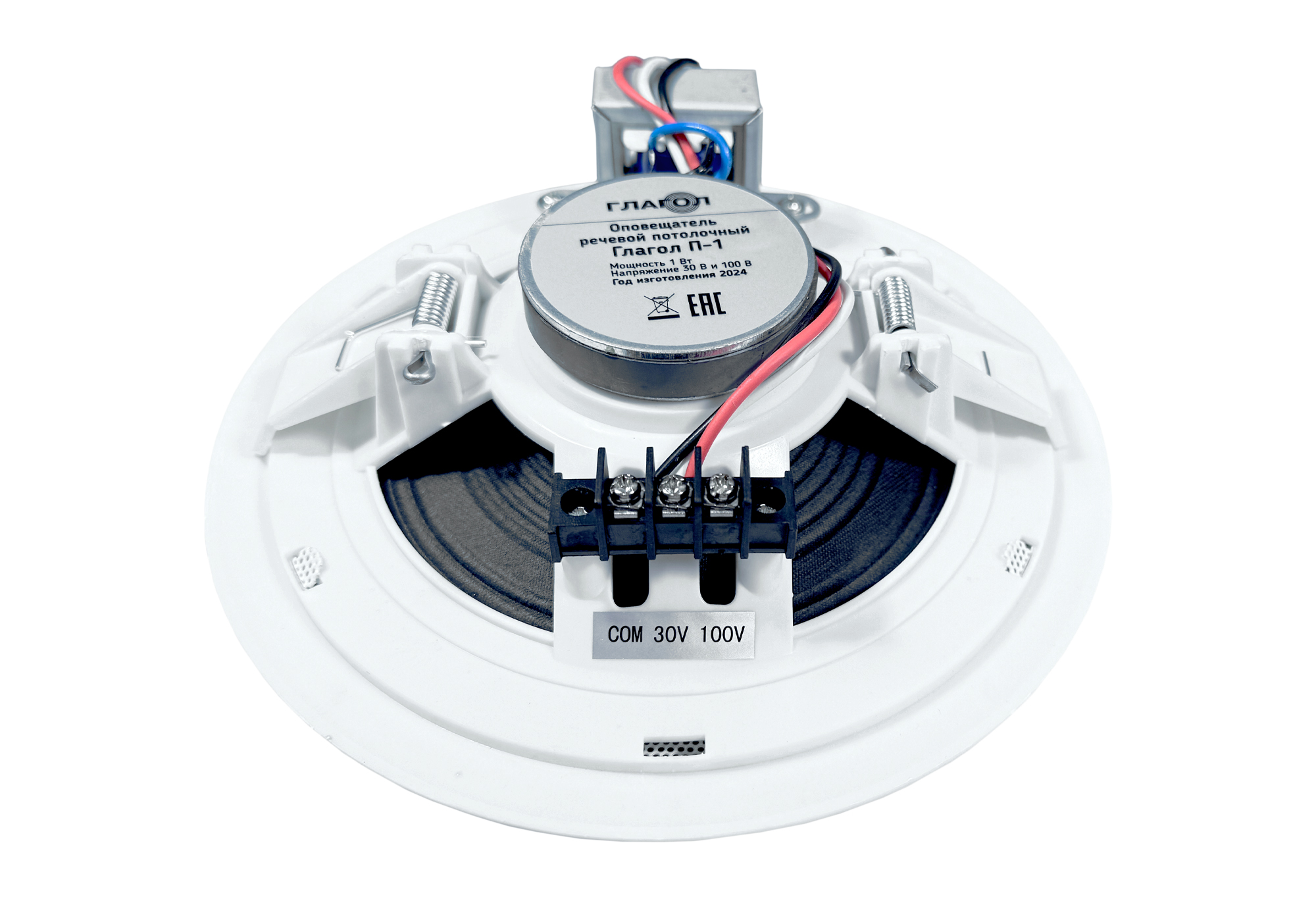 Потолочный оповещатель Глагол П-1 предназначен для систем речевого оповещения и звуковой трансляции. Неравномерность АЧХ в диапазоне от 100 до 10000 Гц составляет не более 5 дБ. Небольшие по высоте габариты позволяют устанавливать их на подвесные фальш – панели с небольшим подпотолочным пространством. Корпус оповещателя выполнен из высококачественного пластика. Новый клеммный модуль позволяет подключать кабель большого сечения (до 2 мм²).Технические характеристики:Мощность 1 ВтНоминальное напряжение 30 В / 100 ВЗвуковое давление 90 дБДиапазон частот 100 Гц-15000 ГцГабаритные размеры D186×45 ммВес 0,56 кг