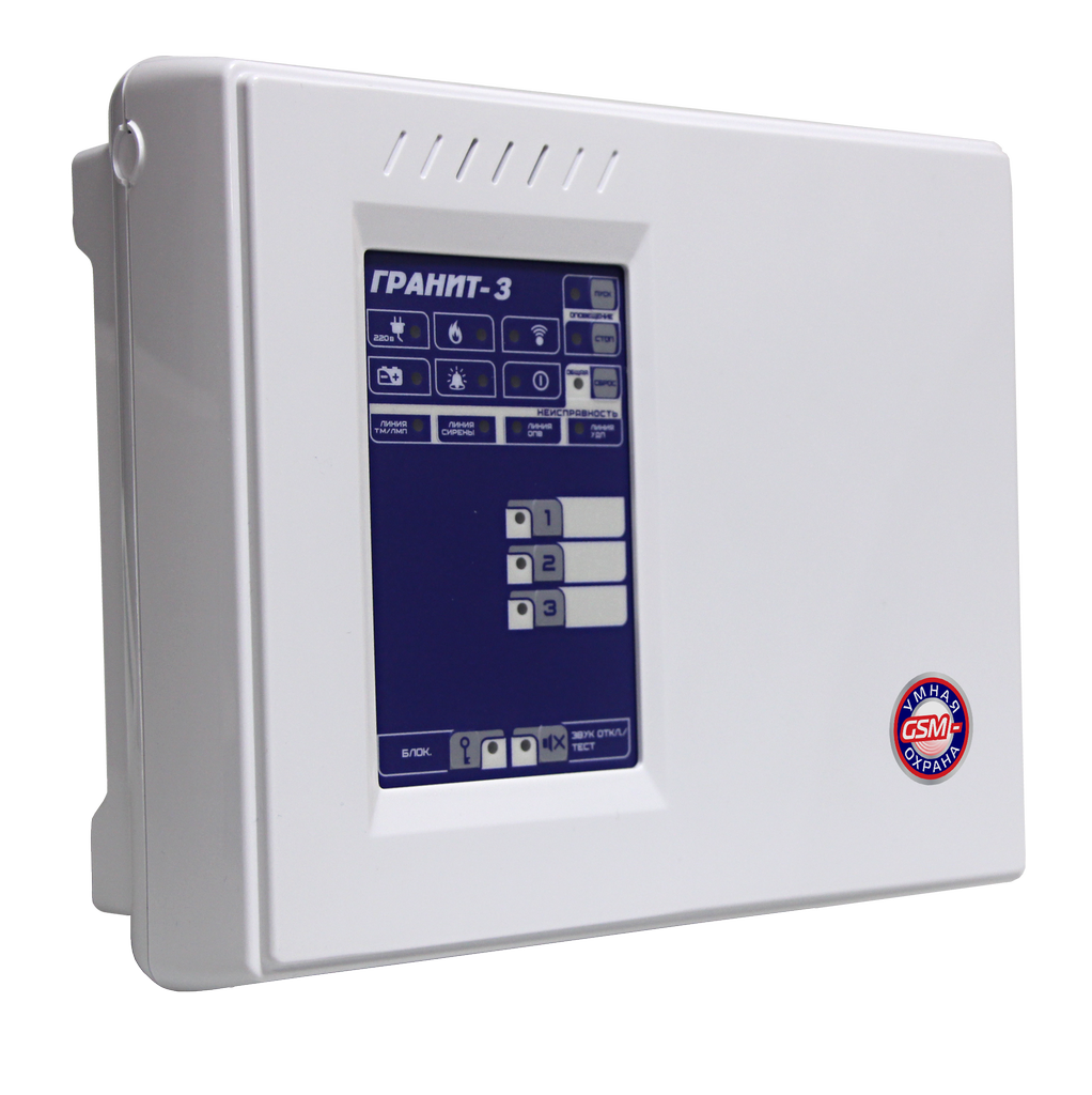Прибор приемно-контрольный Гранит-3А, 3 зоны, автодозвон, GSM-сигнализация (2 SIM-карты+ГТС), речевые сообщения, РИП, программирование через ПК (USB).