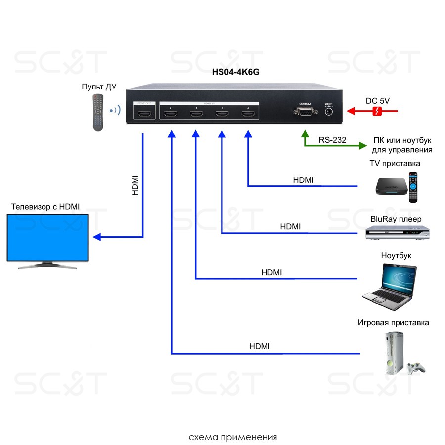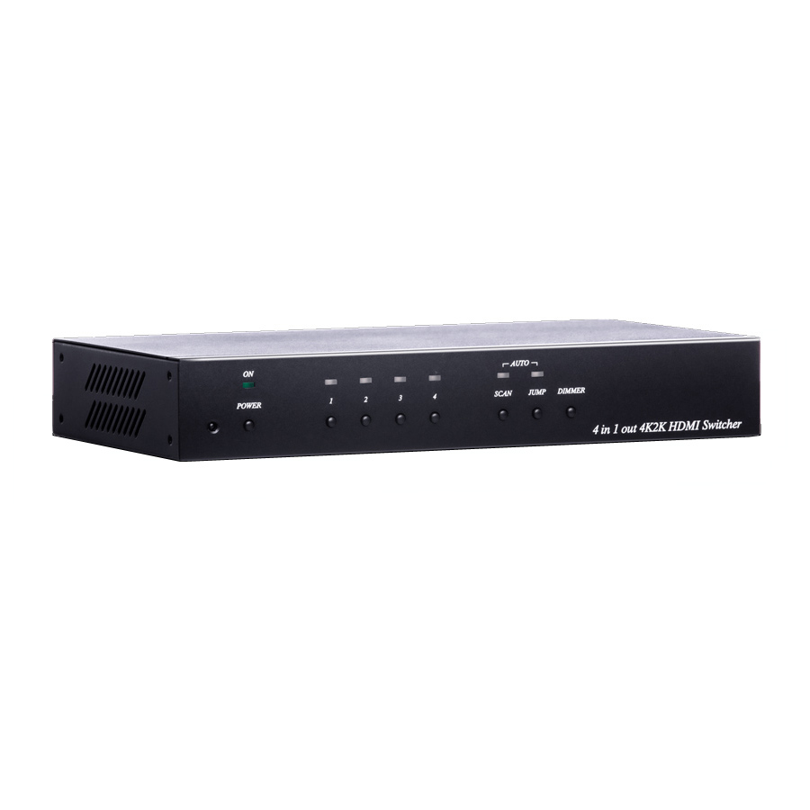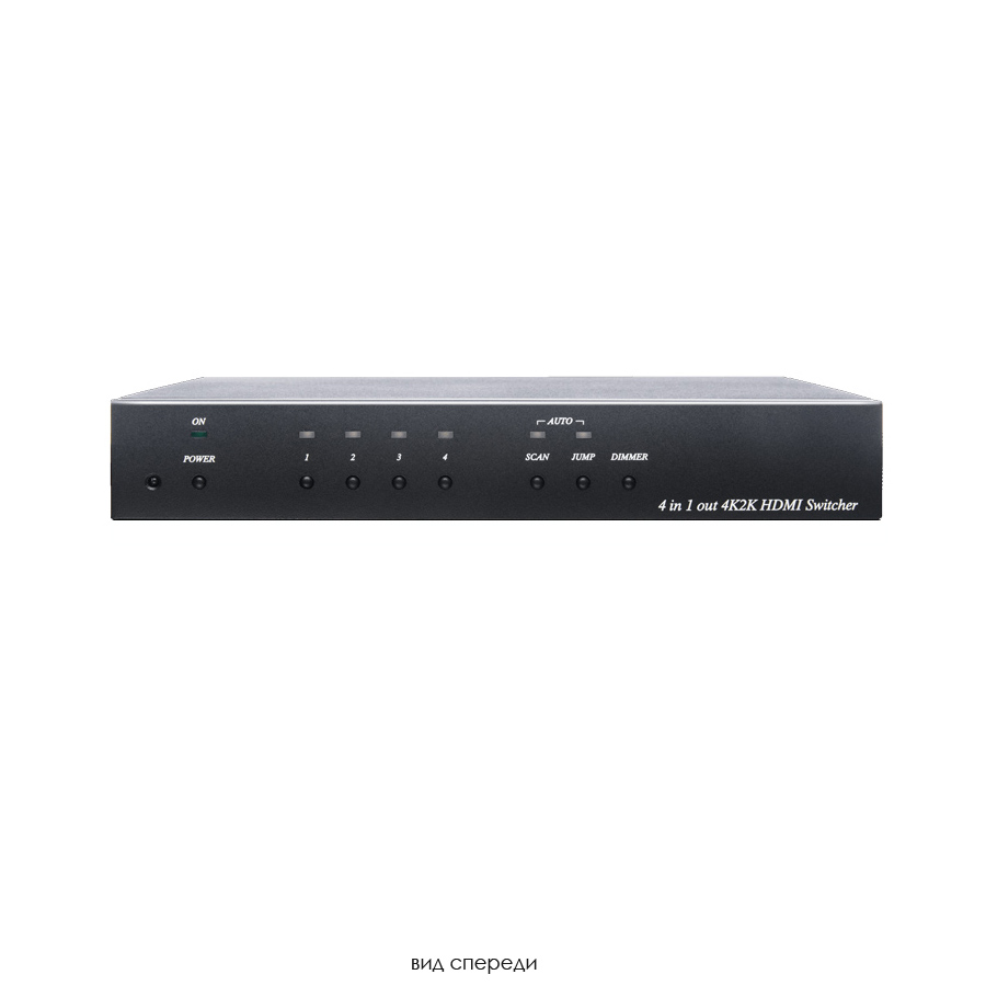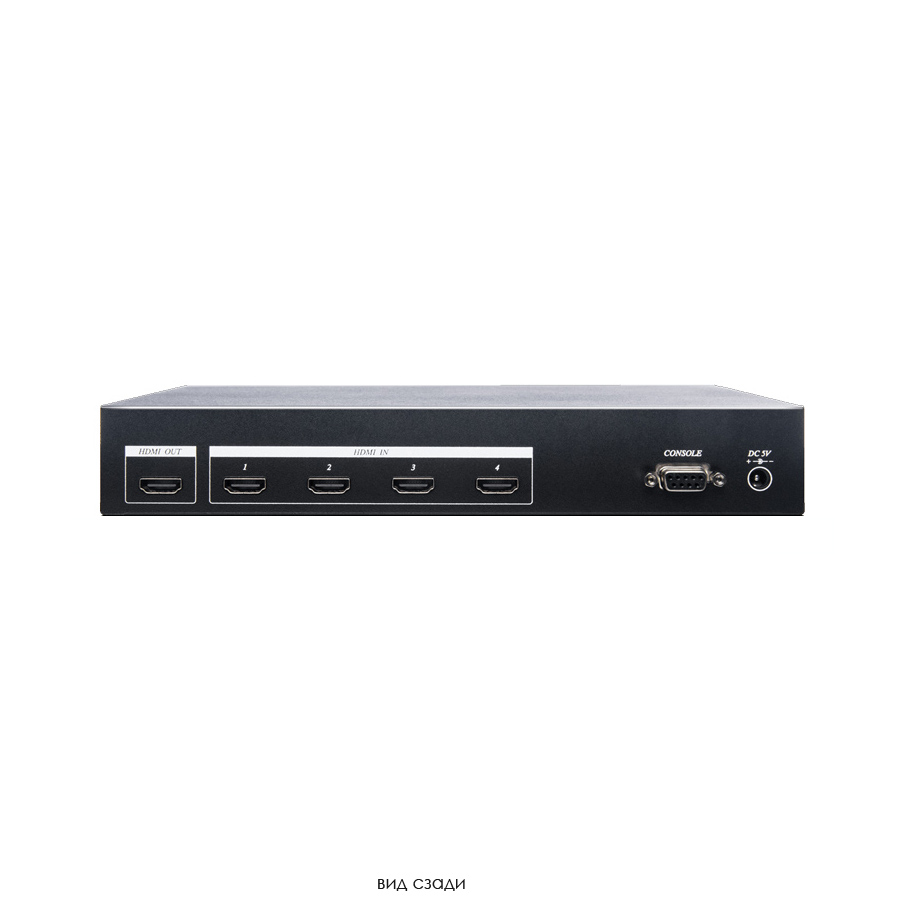 Коммутатор сигнала HDMI (4 входа /1 выход) c поддержкой HDMI 2.0, HDCP 1.4/2.2. Управление при помощи кнопок на лицевой панели, ИК пульта управления, порта RS232. Разрешение до 4K(60Гц) 4:4:4. Вх. -HDMI(A)x4/RS232(DB9)/Роз.2,1х5мм(DC5V). Вых. - HDMI(A). В комплекте блок питания и ИК пульт управления. Размеры (ШхВхГ): 253х40х143мм. Вес:0,8кг. Рабочая температура 0...+55°C.