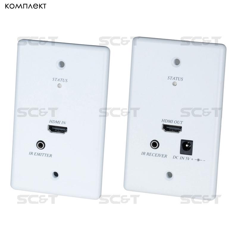 Комплект (передатчик +приемник) передачи HDMI 1.3 с обратным ИК-повторителем. Выполнен в виде настенных врезных розеток. Передает сигналы по двум кабелям витой пары CAT5/5e/6 на расстояние до 100 м. при разрешении 480i / 576i / 480p / 576p, до 70м при разрешении 1080i, до 40м при разрешении 1080p. Размеры каждого устройства (ШxВxГ): 70.3x115x33мм.