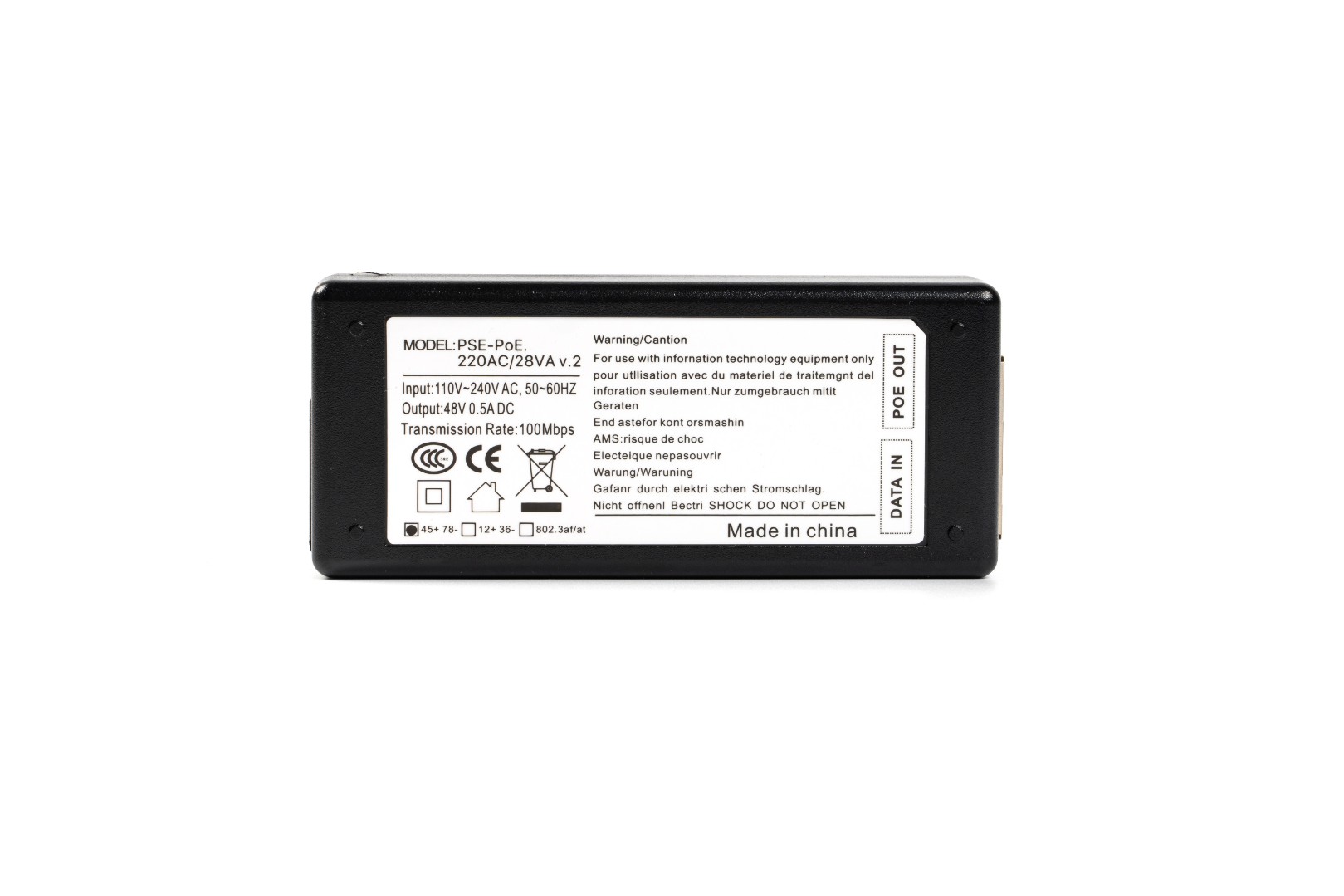 Одноканальный High PoE инжектор PSE-PoE.220AC/28VA v.2 предназначен для питания по сети Gigabit Ethernet IР-камер или другого оборудования, поддерживающего стандарты технологии PoE IEEE 802.3af, IEEE 802.3at