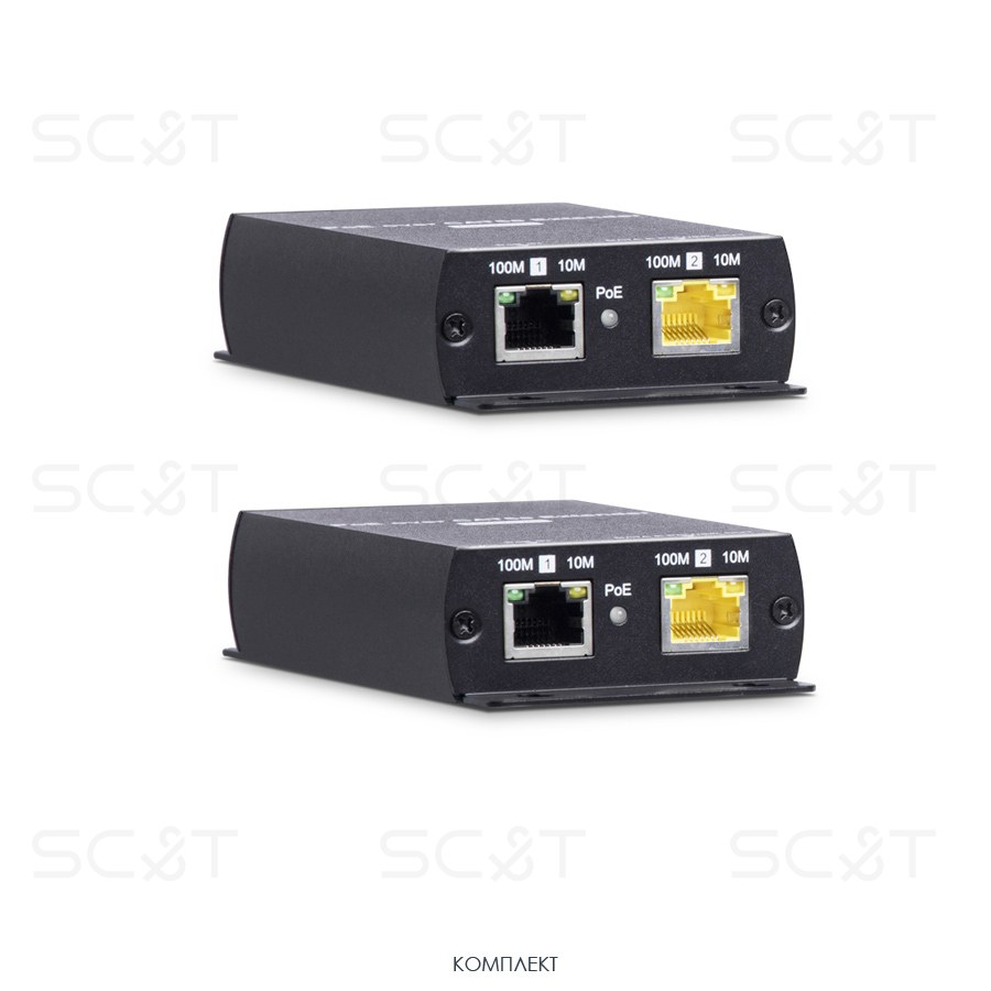 Комплект удлинителей PoE (до 38W) по витой паре до 800м, включает приемник и передатчик. Расстояние передачи Ethernet сигнала по витой паре (Cat5e) на скорости 100 Мбит/с - 500м, на скорости 10 Мбит/с - 800м. Соответствует стандартам PoE IEEE 802.3af/at/bt. Порты: вх.- FE (10/100 Base-T), вых.- FE (10/100 Base-T). Размеры (ШхВхГ): 67 x 27 x 135 мм. Рабочая температура: -40...+70°C.