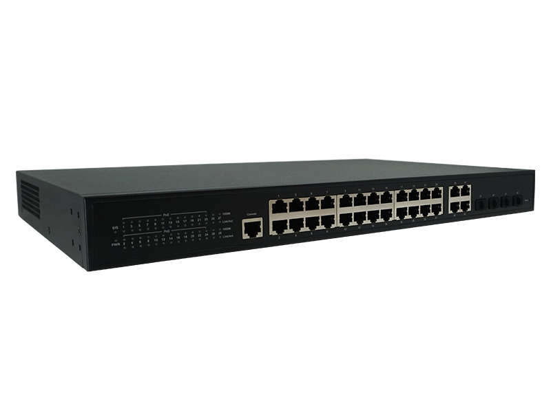 24 порта до 1000Mbps RJ-45, PoE 4 порта до 1000 Mbps RJ-45, Uplink (combo) 4 порта до 1000 Mbps SFP 1 консольный порт RJ-45 PoE Стандарты: IEEE 802.3af/at, Active POE type A, контакты 1/2(+),3/6(-), Watchdog, PoE Бюджет 380 Вт, Коммутационная способность 56 Гбит/с, Рабочая температура: от -30°C до 45°C, Комплект для крепления в 19″ стойку, Размеры: 440х180х45мм, Вес: 3 кг