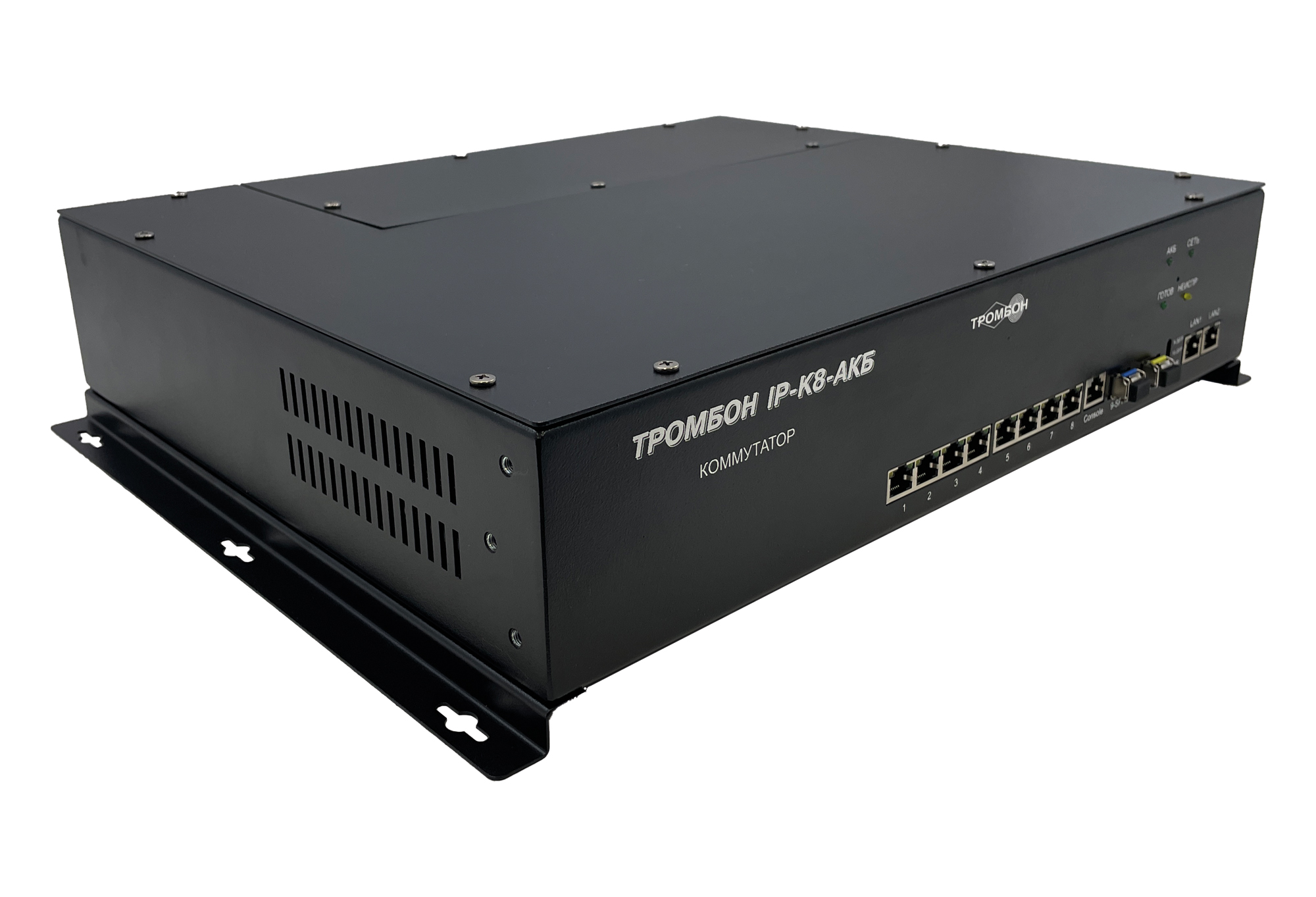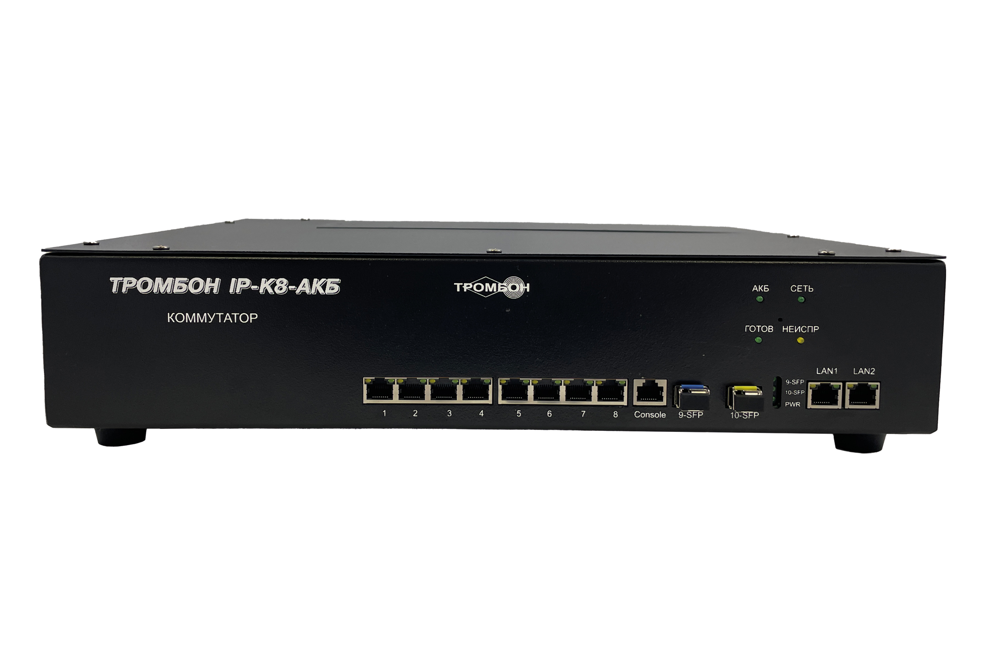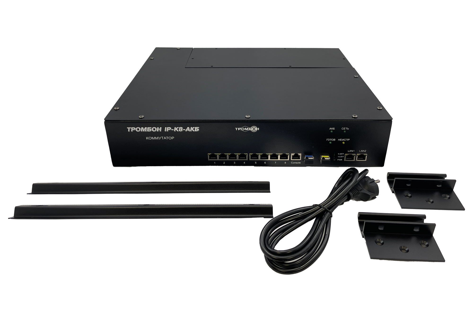 Коммутатор PoE промышленный неуправляемый Тромбон-IP-K8-Л. Оснащен 8х10/100/1000Mbp PoE (IEEE802.3af/at до 30Вт на порт 1-8, доступный бюджет мощности PoE 120Вт) и 2хSFP 1000. Исполнение 19”(1U) стоечное. Коммутатор имеет встроенный блок питания на 220В и возможность подключения внешних резервных АКБ 24В, для подержания работы коммутатора и подключенных по PoE устройств в отсутствии основного напряжения. Сертифицирован согласно требованиям пожарной безопасности ТР ЕАЭС-043/2017.