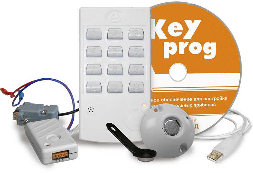 Состав комплекта: клавиатура Портал вар.1, USB-кабель, USB-программатор, CD с ПО "KeyProg". В системе "Лавина" позволяет программировать ППКОП Карат