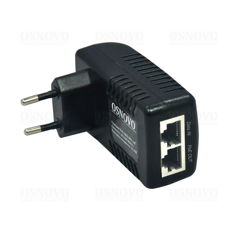PoE-инжектор Fast Ethernet на 1 порт. Соответствует стандартам PoE IEEE 802.3af. Автоматическое определение PoE устройств. Мощность PoE на порт - до 15.4W. Вх. 1 x RJ45(10/100 Base-T), вых. - 1 x RJ45(10/100 Base-T, PoE, IEEE 802.3af). Питание: AC100-240V. Не требует монтажа, устанавливается на электрическую розетку. Размеры (ШхВхГ): 83x31x45мм. Рабочая температура -20...+45 гр.С.