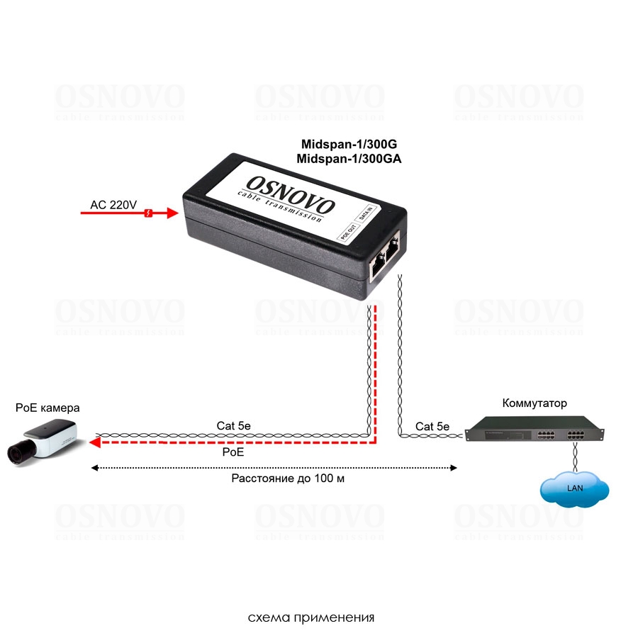 PoE-инжектор Gigabit Ethernet на 1 порт, мощностью до 30W. Совместим с оборудованием PoE IEEE 802.3af/at. Мощность PoE на порт - до 30W. Напряжение PoE - 48V(конт. 4,5(+), 7,8(-)). Порты: вх. - 1 x RJ45(10/100/1000 Base-T), вых. 1 x RJ45(10/100/1000 Base-T, PoE 48V). Питание: AC100-240V. Размеры (ШхВхГ): 50x30x105мм. Рабочая температура : -10...+55 гр. С.