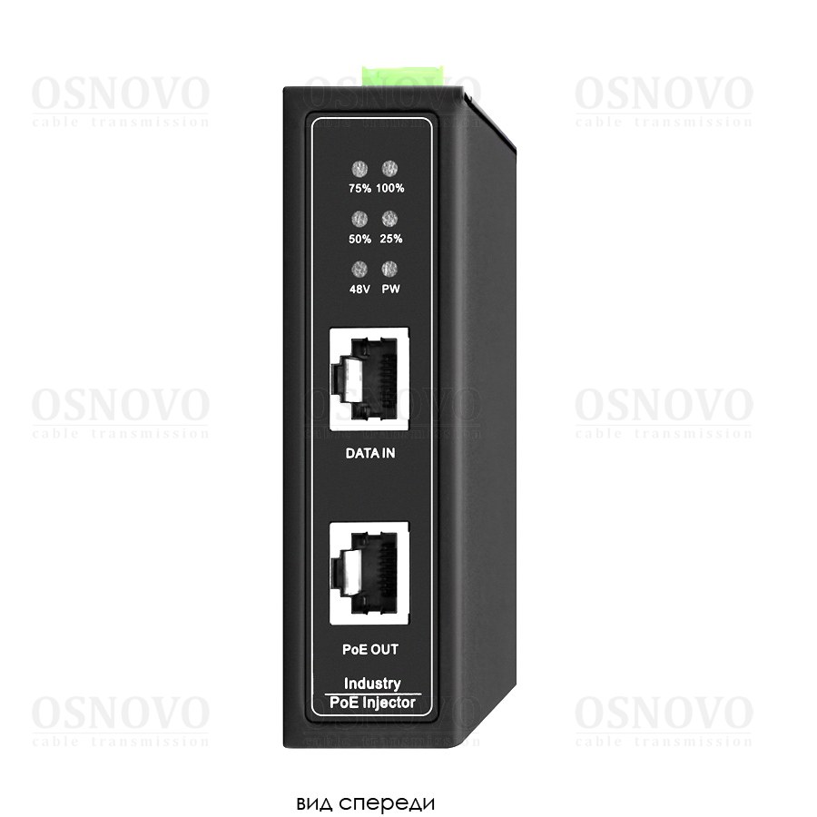 Промышленный PoE-инжектор Gigabit Ethernet на 30W. Соответствует стандартам PoE IEEE 802.3af/at. Автоматическое определение PoE устройств. Мощность PoE - до 30W. Поддержка скорости 10/100/1000Base-T. вх. - RJ45 (10/100/1000 Base-T), вых. - RJ45(10/100/1000 Base-T, PoE, IEEE 802.3af/at). Встроенная грозозащита 6kV.Размеры(ШхВхГ): 30x105x89 мм. Металлический корпус, Монтаж на DIN-рейку и на стену. Питание DC48-57V. Вес: 0,35 кг. Рабочая температура -40...+80 гр. С.