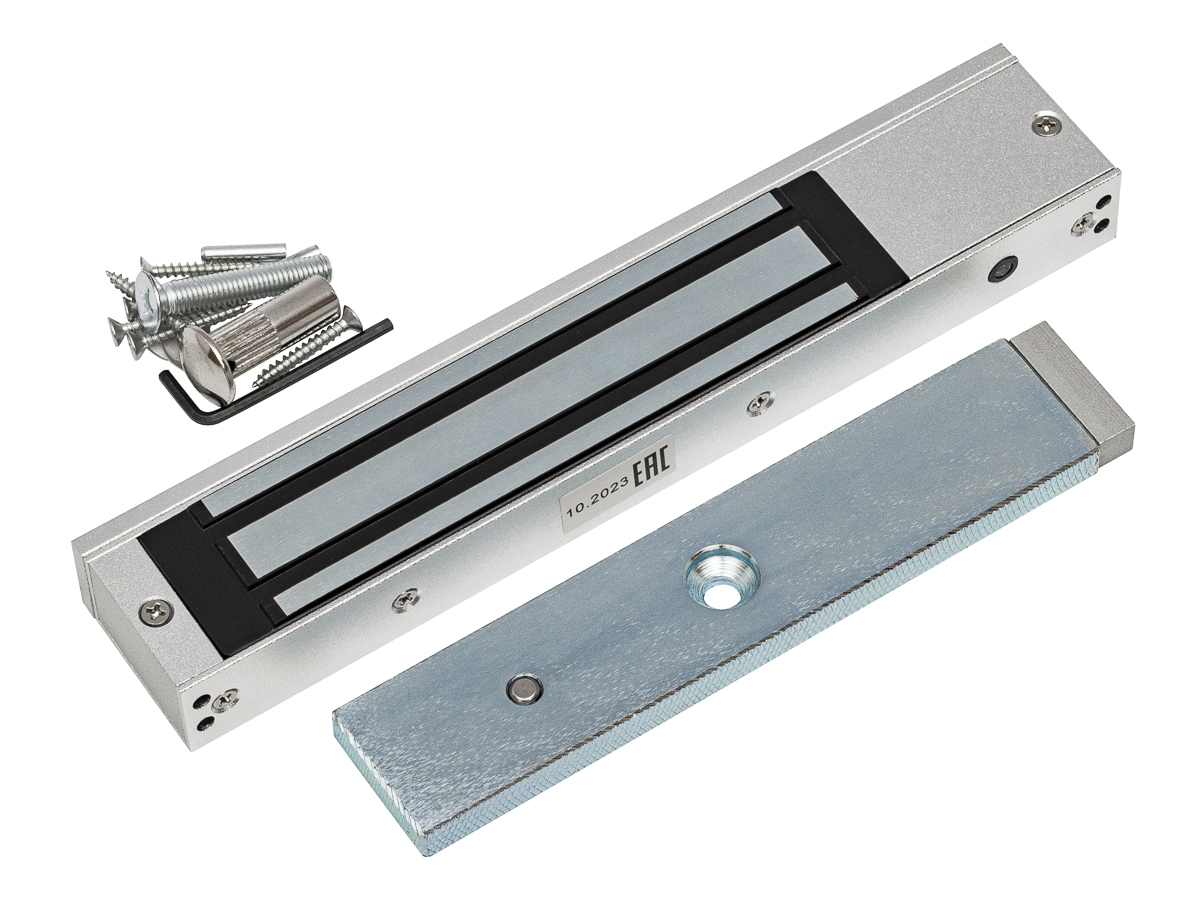 Электромагнитный замок, 12V/24V DC, не более 0,48 A, усилие 300 кг, габаритные размеры 253x43x28 мм. Масса брутто 2000 г., офисный дизайн, планка в комплекте, световая индикация, Датчик Холла положения замка (выход реле НО, НЗ) Механический компенсатор эффекта остаточной намагниченности на якоре замка. Темп.диапазон -40°С…+40°С