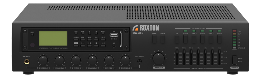USB-проигрыватель-тюнер-усилитель 360 Вт, 3 микр.+ 3 унив. входа, 5 зон, работа с RM-05