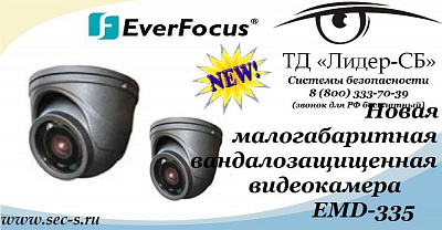 Уважаемые покупатели! ТД «Лидер-СБ» представляет новую малогабаритную вандалозащищенную видеокамеру EverFocus EMD-335.