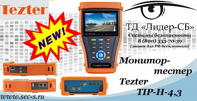 Уважаемые покупатели! ТД «Лидер-СБ» объявляет о поступлении в продажу нового универсального портативного монитора-тестера Tezter TIP-H-4,3 для аналоговых и IP-видеокамер.