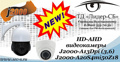 Уважаемые покупатели! ТД «Лидер-СБ» объявляет о поступлении в продажу новых HD-AHD видеокамер J2000-A13Dpi (3,6) и J2000-A20S4mi50Z18.
