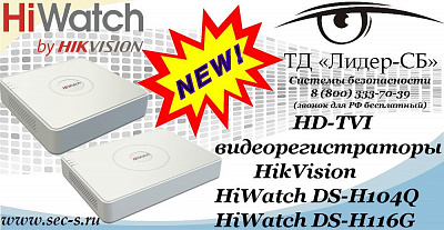 Уважаемые покупатели! ТД «Лидер-СБ» объявляет о начале продаж HD-TVI видеорегистраторов HikVision HiWatch DS-H104Q и HiWatch DS-H116G.
