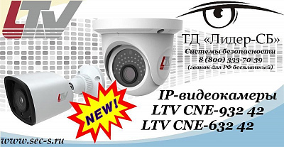 Уважаемые покупатели! ТД «Лидер-СБ» сообщает о поступлении в продажу новых IP-видеокамер LTV CNE-632 42 и LTV CNE-932 42.