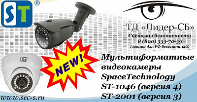 Уважаемые покупатели! ТД «Лидер-СБ» объявляет о поступлении в продажу новых мультиформатных видеокамер SpaceTechnology ST-1046 (версия 4) и ST-2001 (версия 3).