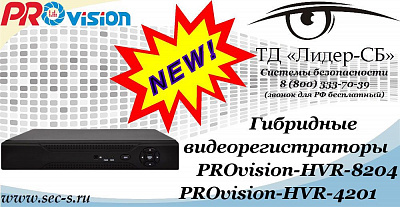 Уважаемые покупатели! ТД «Лидер-СБ» объявляет о поступлении в продажу новых видеорегистраторов PROvision-HVR-8204 и PROvision-HVR-4201.