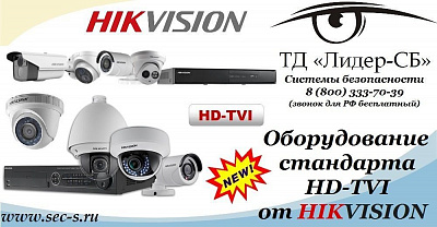 ТД «Лидер-СБ» представляет оборудование стандарта HD-TVI от Hikvision. HikVision
