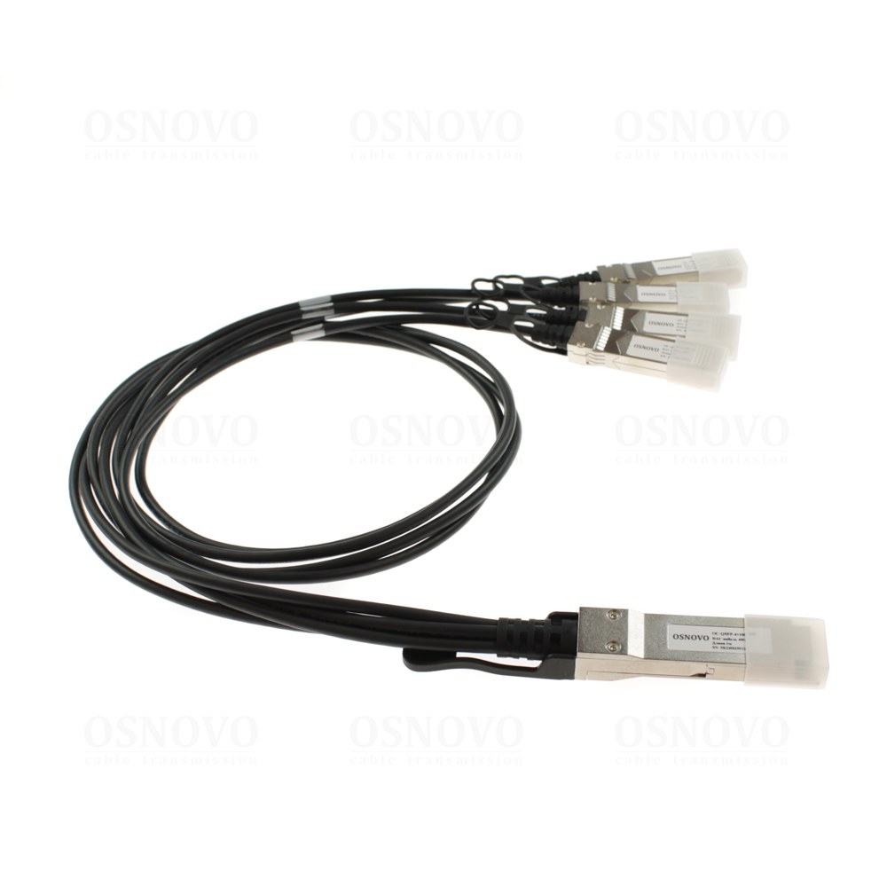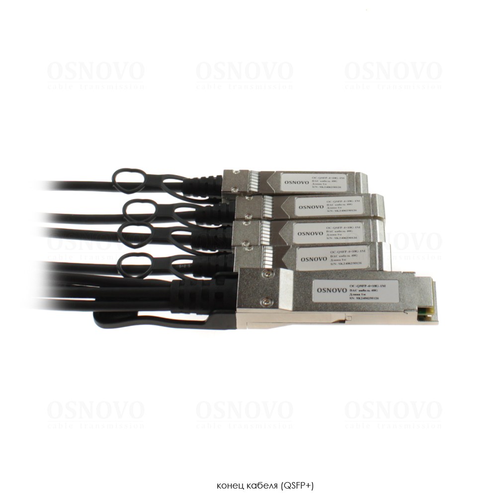 Объединительный DAC кабель QSFP+ 40G для 4х10G. Скорость: 40 Гбит/c. Тип разъема: QSFP+/SFP+. Длина кабеля 1м. Размеры коннектора (ШхВхГ): 11x9x101мм. Рабочая температура: 0…+70°С.