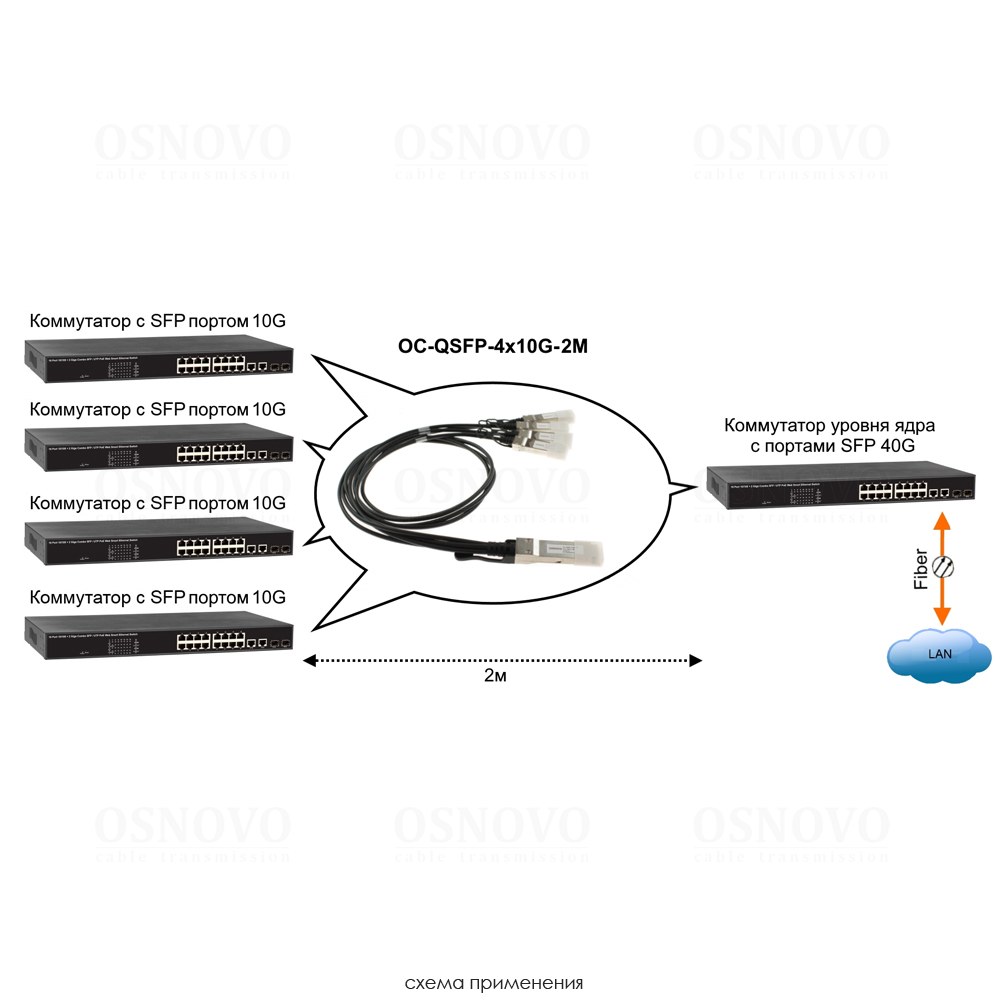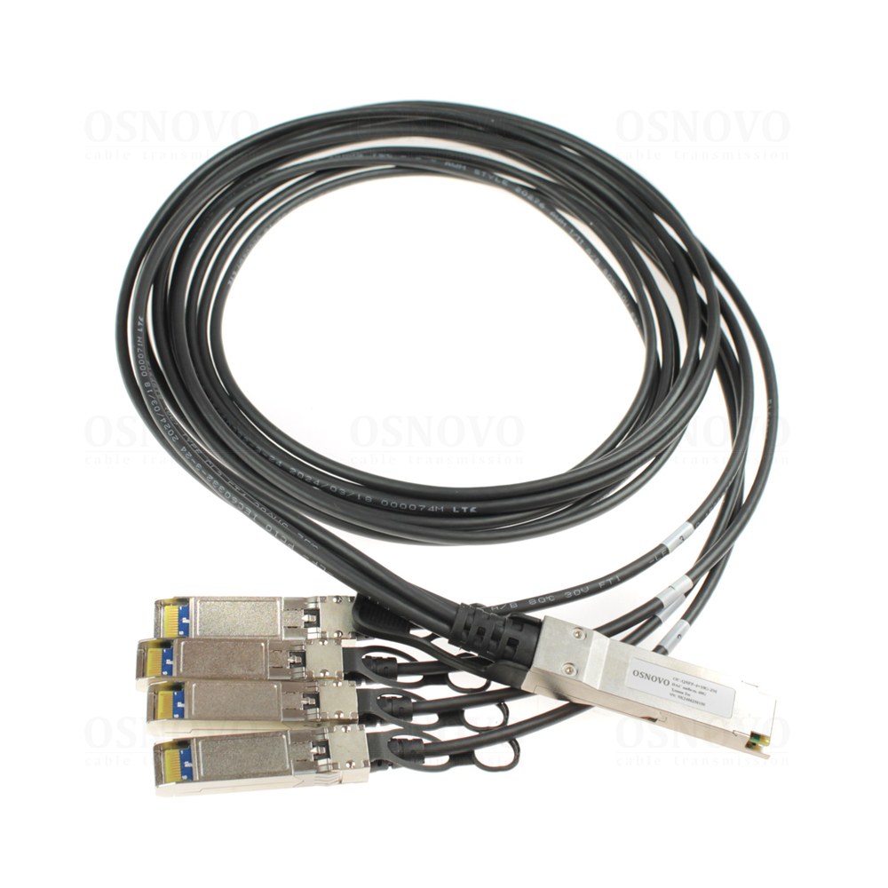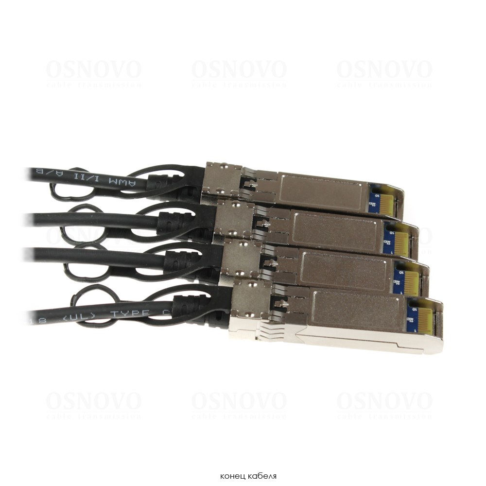 Объединительный DAC кабель QSFP+ 40G для 4х10G. Скорость: 40 Гбит/c. Тип разъема: QSFP+/SFP+. Длина кабеля 2м. Размеры коннектора (ШхВхГ): 11x9x101мм. Рабочая температура: 0…+70°С.