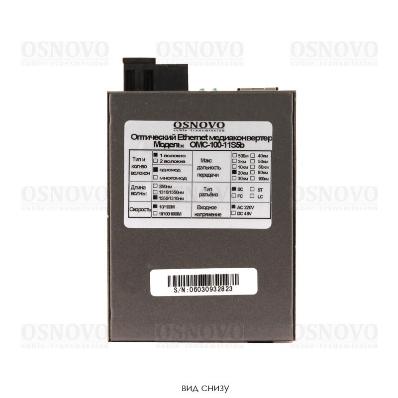 Оптический Fast Ethernet медиаконвертер для передачи Ethernet по одному волокну одномодового оптического кабеля до 20км. Поддерживает скорость 10/100М (IEEE 802.3i, IEEE 802.3u, IEEE 802.3x). Автоопределение MDI/MDI-X. Вх. - Роз.2,1х5мм(DC5V), Вх./вых. - RJ45(Ethernet)/SC(tx1550/rx1310нм). В комплекте: БП DC5V(1A). Размеры (ШхВхГ): 70x25x93мм. Может устанавливаться в бокс для 19 дюймовой стойки модели О-142B (1 слот). Рабочая температура: 0…+60гр.С.