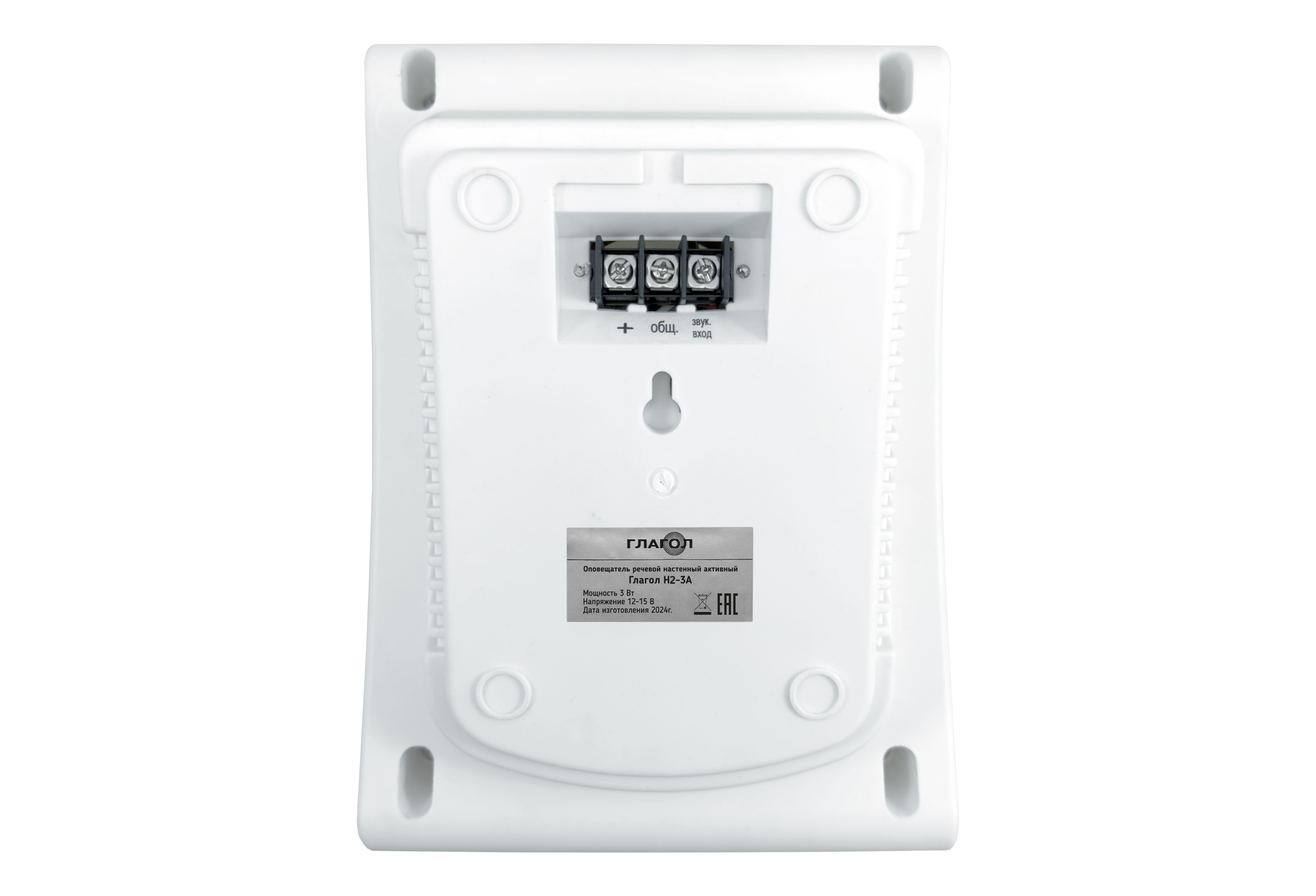 Оповещатель речевой настенный активный Глагол Н2-3А предназначен для воспроизведения голосовых сообщений, речевой информации, в системах видеонаблюдения CCTV. Преимущества: - Встроенная регулировка громкости - Встроенный усилитель мощностиТехнические характеристики:Мощность 3 ВтНапряжение питания постоянное 12-15 ВЗвуковое давление 94 дБДиапазон частот 90 Гц-16000 ГцГабаритные размеры 193×175×85 ммВес 1,14 кг