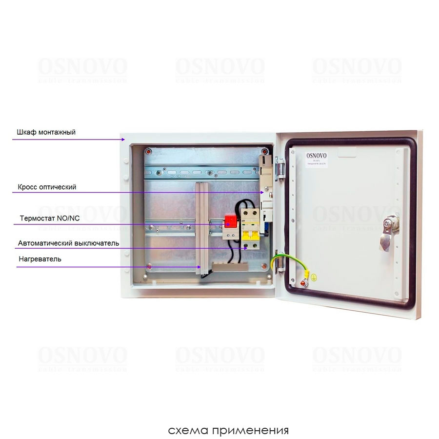 Уличная станция (термошкаф) с термостабилизацией и оптическим кроссом. В основе металлический шкаф с классом защиты IP66. Доступное место под установку оборудования на встроенные DIN-рейки: верхняя - 160мм, нижняя - 60мм. Может поставляться со встроенным оборудованием по заказу. Размеры (ШхВхГ): 300x300x210мм. Рабочая температура (температура окружающей среды): -50…+50°С, температура внутри станции -15…+50°С.