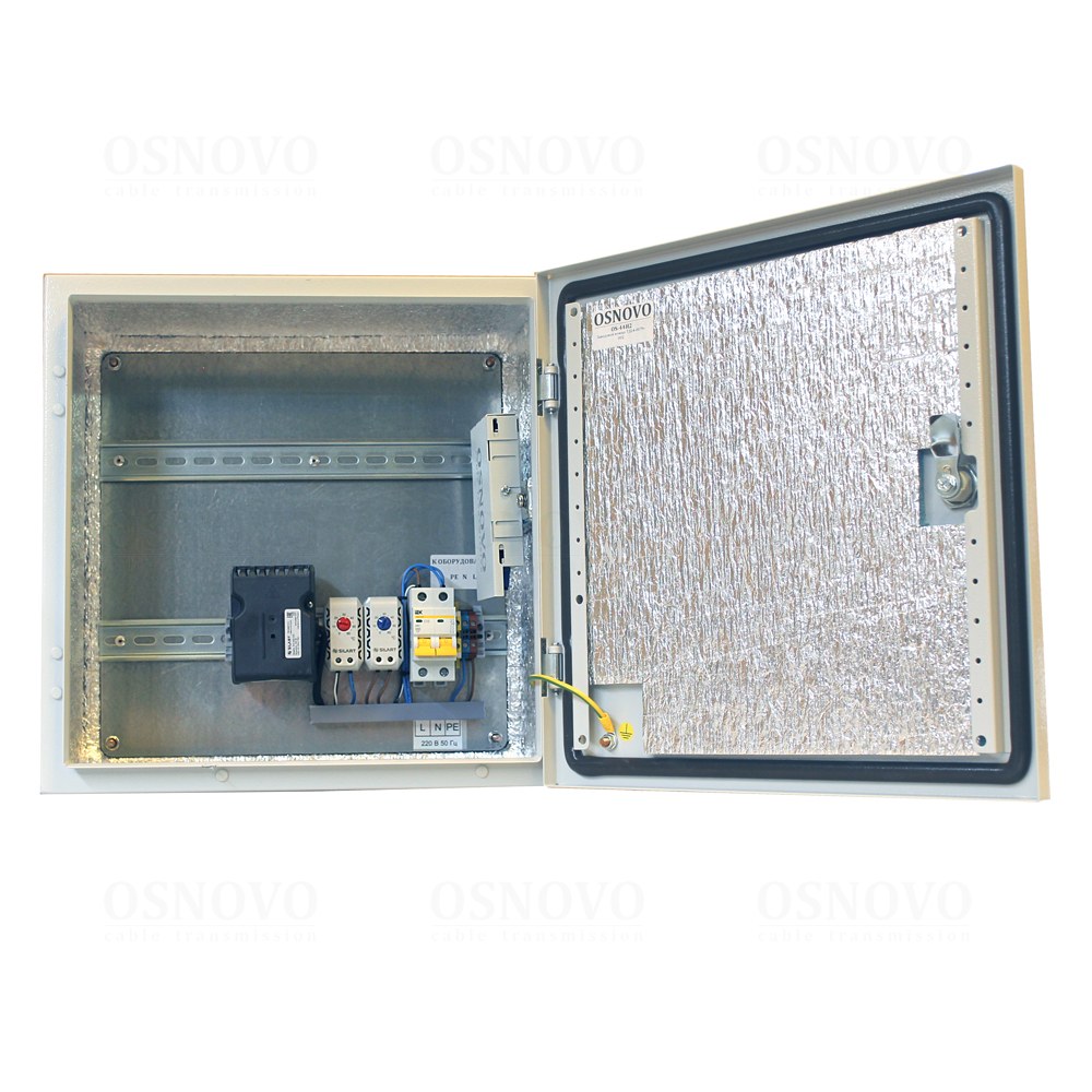 Уличная станция (термошкаф) с термостабилизацией, теплоизоляцией и оптическим кроссом. Система "тёплого пуска" встроенного оборудования (предварительный прогрев). В основе металлический шкаф с классом защиты IP66. Доступное место под установку оборудования на встроенные DIN-рейки: верхняя - 300мм, нижняя - 140мм. Может поставляться со встроенным оборудованием по заказу. Размеры (ШхВхГ): 400x400x210мм. Рабочая температура (температура окружающей среды): -60…+50°С, температура внутри станции 0…+50°С.