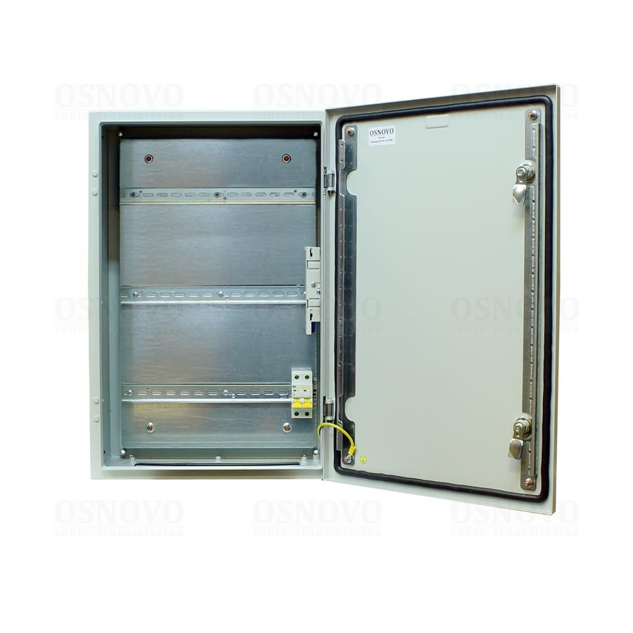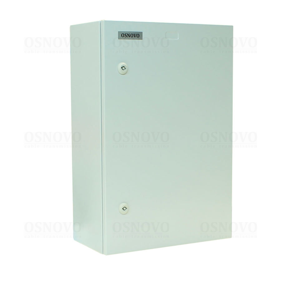 Уличная станция (уличный шкаф) с оптическим кроссом. В основе металлический шкаф с классом защиты IP66. Доступное место под установку оборудования на встроенные DIN-рейки: верхняя - 340мм, средняя - 320мм, нижняя - 290мм. Может поставляться со встроенным оборудованием по заказу. Размеры (ШхВхГ): 400x600x210мм. Рабочая температура: -50…+50°С.