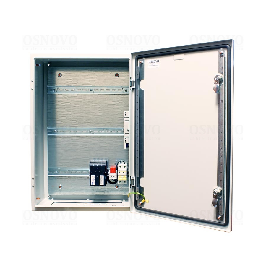 Уличная станция (термошкаф) с термостабилизацией и оптическим кроссом. В основе металлический шкаф с классом защиты IP66. Доступное место под установку оборудования на встроенные DIN-рейки: верхняя - 340мм, средняя - 320мм, нижняя - 170мм. Может поставляться со встроенным оборудованием по заказу. Размеры (ШхВхГ): 400x600x210мм. Рабочая температура (температура окружающей среды): -60…+50°С, температура внутри станции -10…+50°С.