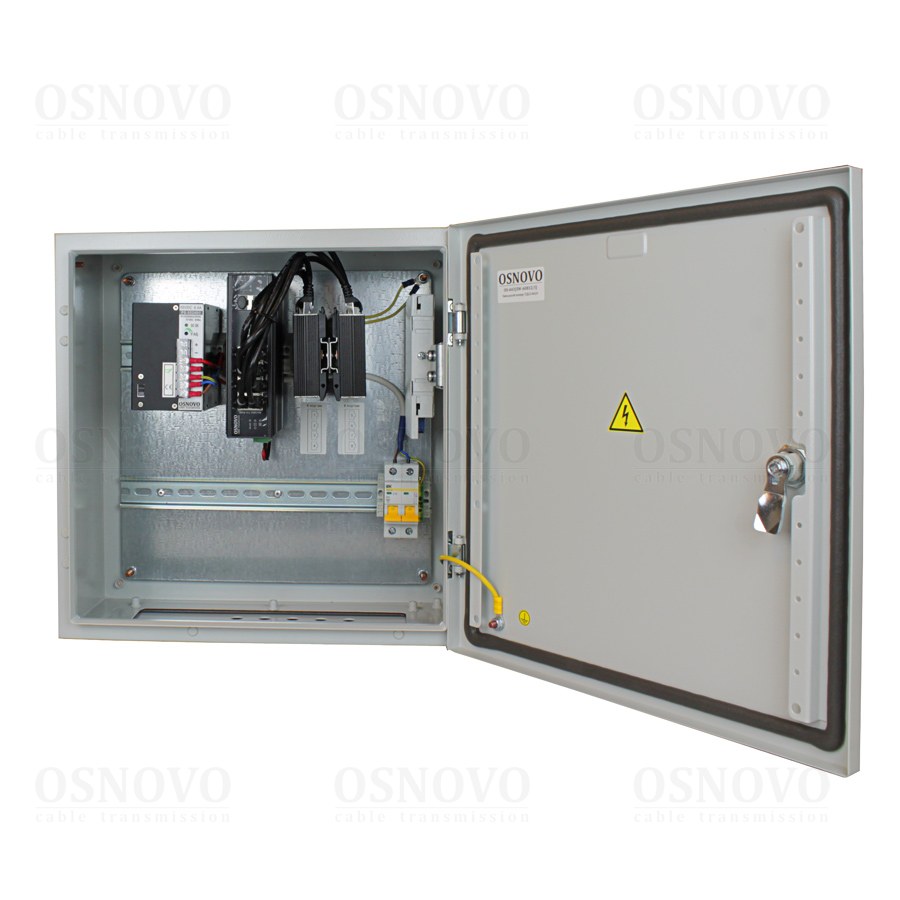 Уличный коммутатор c грозозащитой портов PoE на базе уличной станции OSNOVO OS-441. Порты: 6 x FE (10/100Base-T) с PoE (до 30W) + 2 x FE (10/100Base-T) с PoE (до 60W) + 1 x GE (10/100/1000Base-T) + 2 x GE SFP (1000Base-X). Суммарный бюджет PoE до 240W. Режим антизависания и режим удлинения линий связи по 8-ми PoE портам до 250м (скорость до 10Мбит/с). Металлический шкаф (ШxВxГ): 400х400х210мм, питание AC195-265V, оптический кросс, температурный диапазон -40…+50гр., исполнение IP66