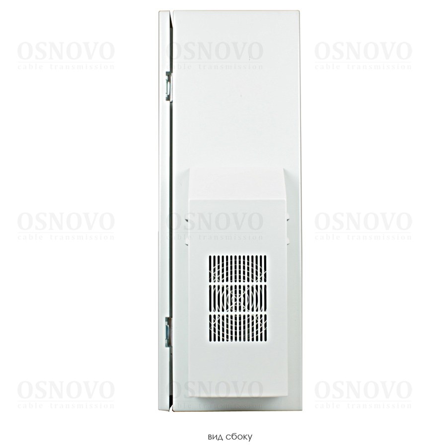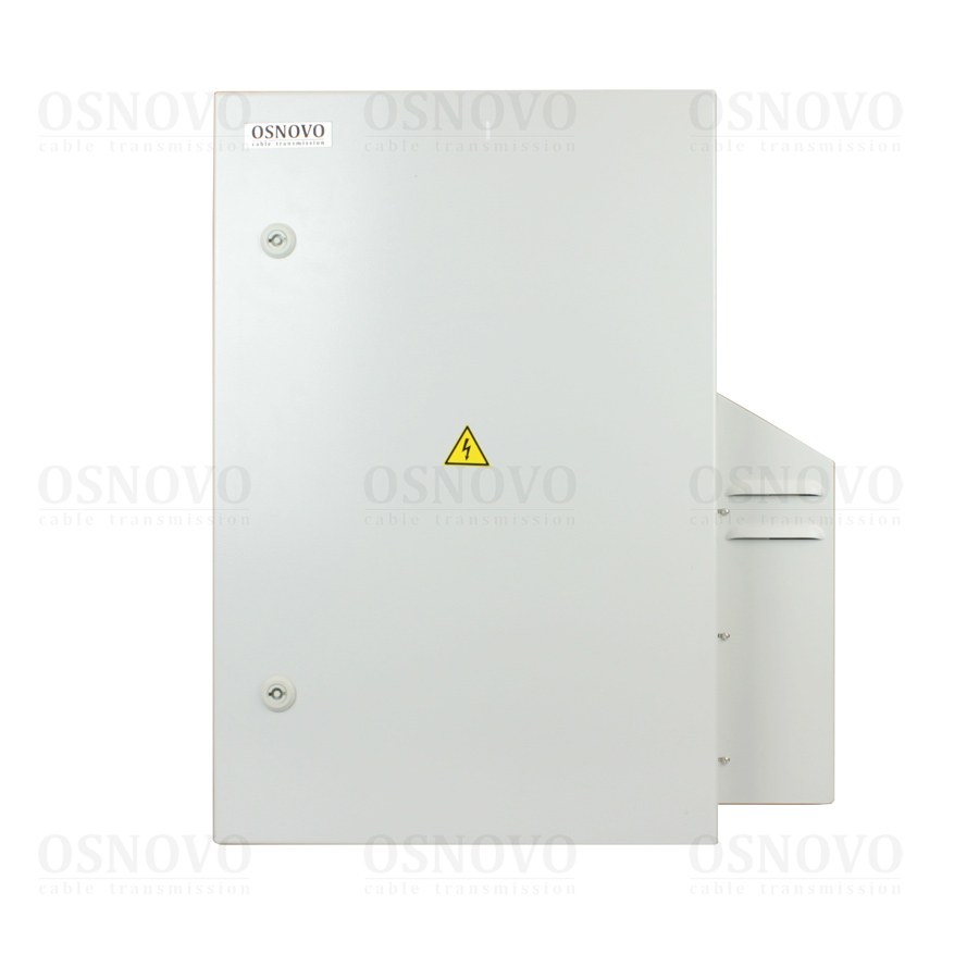 Уличная станция (термошкаф) с термоэлектрическим охладителем, термостабилизацией, теплоизоляцией, резервным питанием и оптическим кроссом. Промышленный БП 2*DC55V(240W), АКБ 48В(7Ач). Защита АКБ от глубокого разряда. В основе металлический шкаф с классом защиты IP66. Доступное место под установку оборудования на встроенные DIN-рейки: верхняя - 170мм, средняя - 50мм. Может поставляться со встроенным оборудованием по заказу. Размеры (ШхВхГ): 400x600x210мм. Рабочая температура (температура окружающей среды): -60…+50°С, температура внутри станции 0…+50°С (при тепловыделении встроенного оборудования 75 ватт).