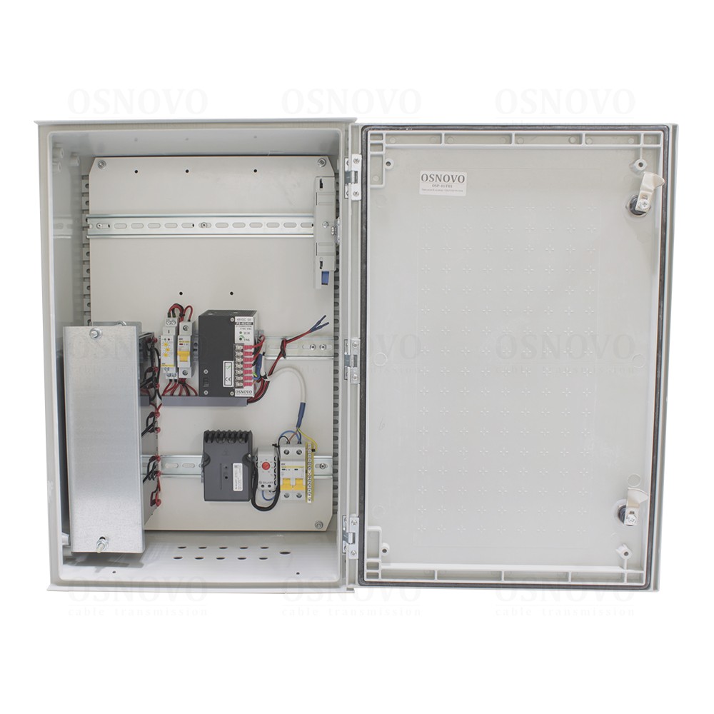 Уличная станция (термошкаф) в пластиковом шкафу IP66 с термостабилизацией и оптическим кроссом. Радиопрозрачная конструкция. Промышленный БП DC48V(240W), АКБ 48В(7Ач). Защита АКБ от глубокого разряда. Доступное место под установку оборудования на встроенные DIN-рейки: верхняя - 340мм, средняя - 60мм, нижняя - 60мм. Защитный козырёк. Может поставляться со встроенным оборудованием по заказу. Размеры (ШхВхГ): 400x600x230мм. Рабочая температура (температура окружающей среды): -60…+50°С, температура внутри станции 0…+50°С.