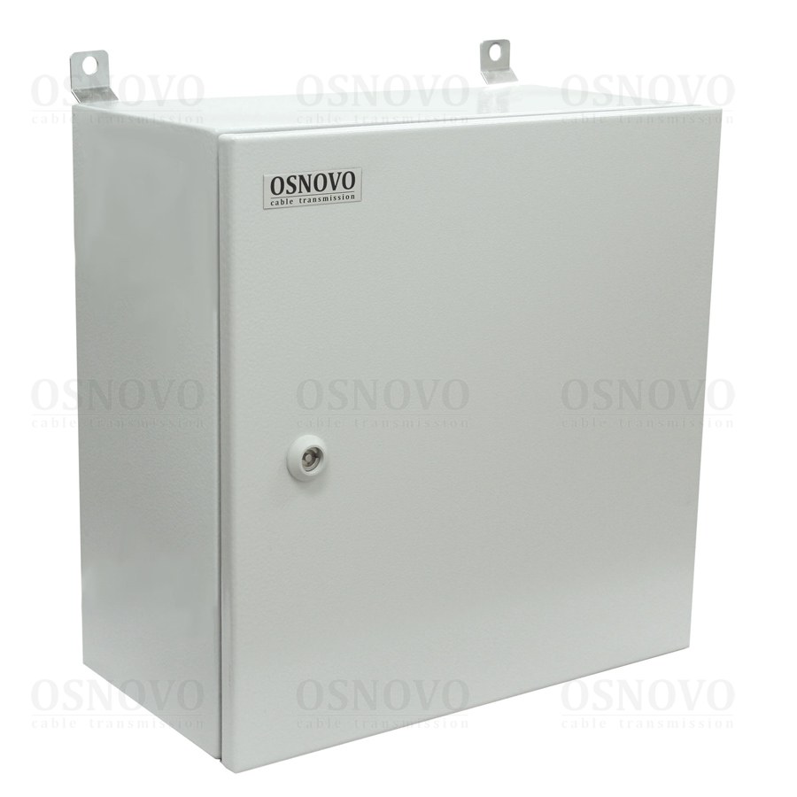 Уличная станция (уличный шкаф) с оптическим кроссом. В основе шкаф из нержавеющей стали с классом защиты IP66. Доступное место под установку оборудования на встроенные DIN-рейки: верхняя - 310мм, нижняя - 250мм. Может поставляться со встроенным оборудованием по заказу. Материал: нержавеющая сталь. Размеры (ШхВхГ): 400x400x210мм. Рабочая температура: -50…+50°С.