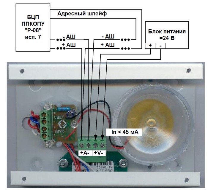 Адресный свето-звуковой оповещатель. Исполнение для эксплуатации на промышленных и специальных объектах
